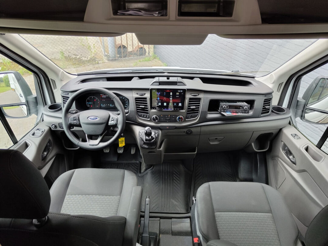 Zoals u mag verwachten van deze Ford Transit is hij uitgerust met een reeks aan actieve veiligheidssystemen. Het Lane-keeping systeem zorgt dat u mooi binnen de lijntjes blijft. Ongemerkt buiten de rijstrook komen is er niet meer bij. De forward collision warning reduceert het gevaar van een botsing met een voorligger significant. Dankzij veiligheidsvoorzieningen als dodehoekdetectie en autonoom remsysteem, bent u steeds veilig onderweg.