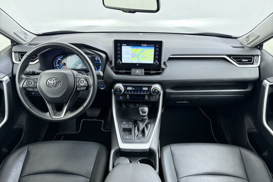 Hij is stijlvol en comfortabel, deze Toyota RAV4, en hij is ontworpen om u veilig en comfortabel te laten rijden onder alle omstandigheden. Op een dag rijden we allemaal elektrisch. Maar voor nu is de hybride oplossing van elektrisch en benzine ideaal! Zo ook bij deze Toyota RAV4. De lederen bekleding geeft het interieur een rijke en luxe uitstraling. In de verwarmbare voorstoelen zitten is elke keer een welkom gevoel. Een praktische extra is de elektrisch bedienbare achterklep die opent en sluit met een druk op de knop. Ook 18 inch lichtmetalen velgen, LED koplampen, trailer assistent, donker getint glas achter, in delen neerklapbare achterbank en LED-achterlichten horen tot de voorzieningen op deze auto.
