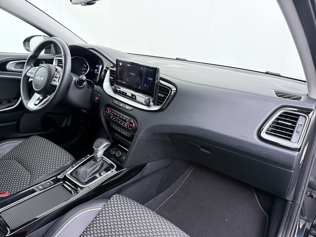 De nieuwste veiligheidssystemen komen in deze Kia Ceed Sportswagon samen. Dat de auto steeds meer taken van de bestuurder overneemt, merkt u bijvoorbeeld aan het systeem voor verkeersbord-detectie in deze auto. Het Lane-keeping systeem zorgt voor een automatisch constante positie binnen de rijstrook. Afdwalen is uitgesloten. Actieve dodehoekdetectie geeft een waarschuwingssignaal wanneer een ander voertuig in uw dode hoek rijdt. Dit verkleint de kans op een aanrijding. Ook helpen het forward collision warning system, hill hold functie, vermoeidheidsherkenning, autonoom remsysteem en bandenspanningcontrolesysteem, uw rit tot een veilige rit te maken.