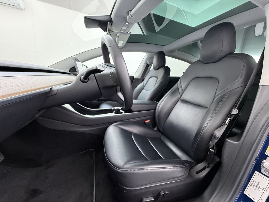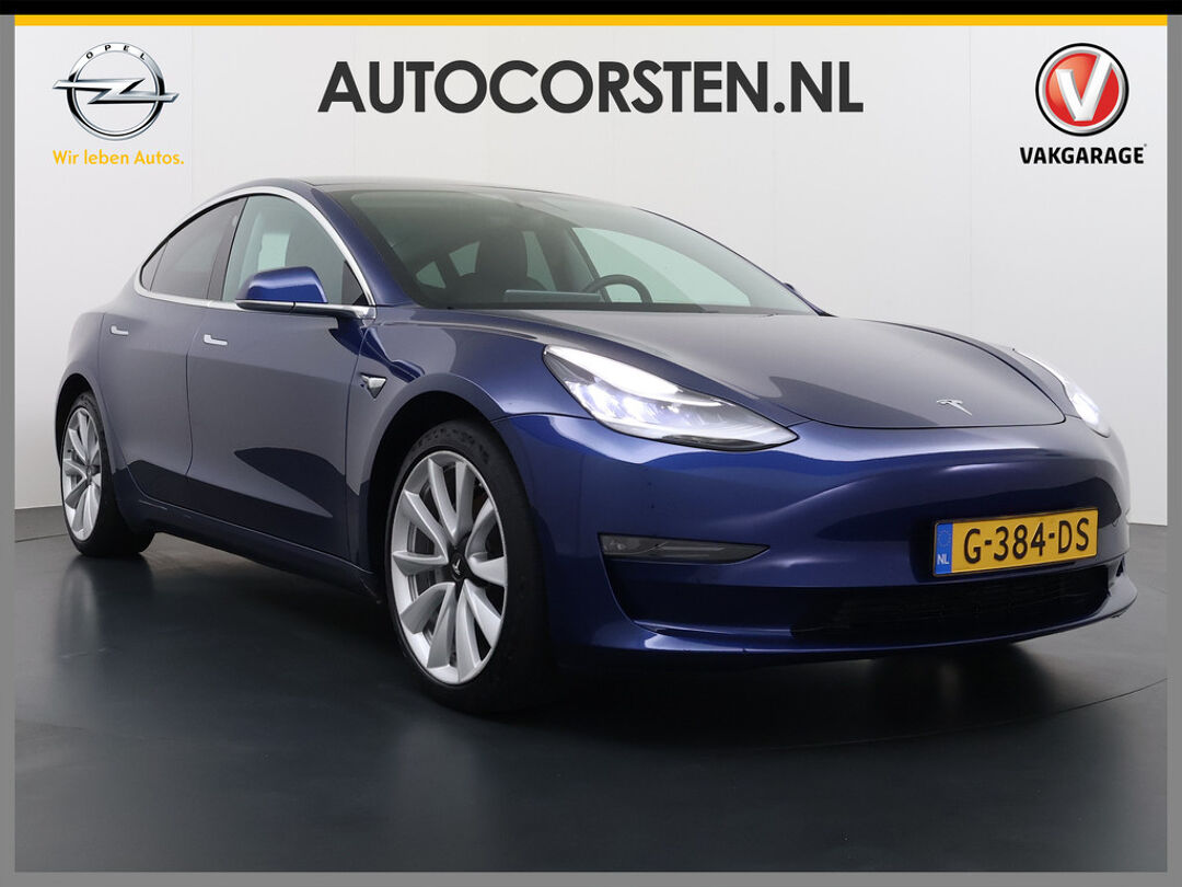 Efficiënte techniek en ongekende dynamiek. Het plezier van elektrisch rijden gaat in deze Tesla Model 3 samen met een spaarzaam stroomverbruik. U hoort slechts het lichte gezoem van de elektromotor tijdens het rijden. Een krachtige motor geeft deze auto zijn sportieve prestaties. Je hóeft natuurlijk niet off-road te gaan om de voordelen van de vierwielaandrijving te ervaren... Maar het kán zeker wel! De hoogwaardige, lederen bekleding benadrukt de kwaliteit van deze auto. Neem plaats op de comfortabele stoelen. Dankzij de elektrische bediening en het geheugen is het eenvoudig om hierin de beste zitpositie te vinden. Het wijdse uitzicht door het glazen panoramadak maakt van elke rit een belevenis. Ook achterin is iedereen snel op temperatuur door de verwarmde achterbank. Bij de rijke uitrusting horen ook elektrisch verstelbare stuurkolom, 19 inch lichtmetalen velgen, LED-dagrijverlichting, getint glas, in delen neerklapbare achterbank en LED-achterlichten.