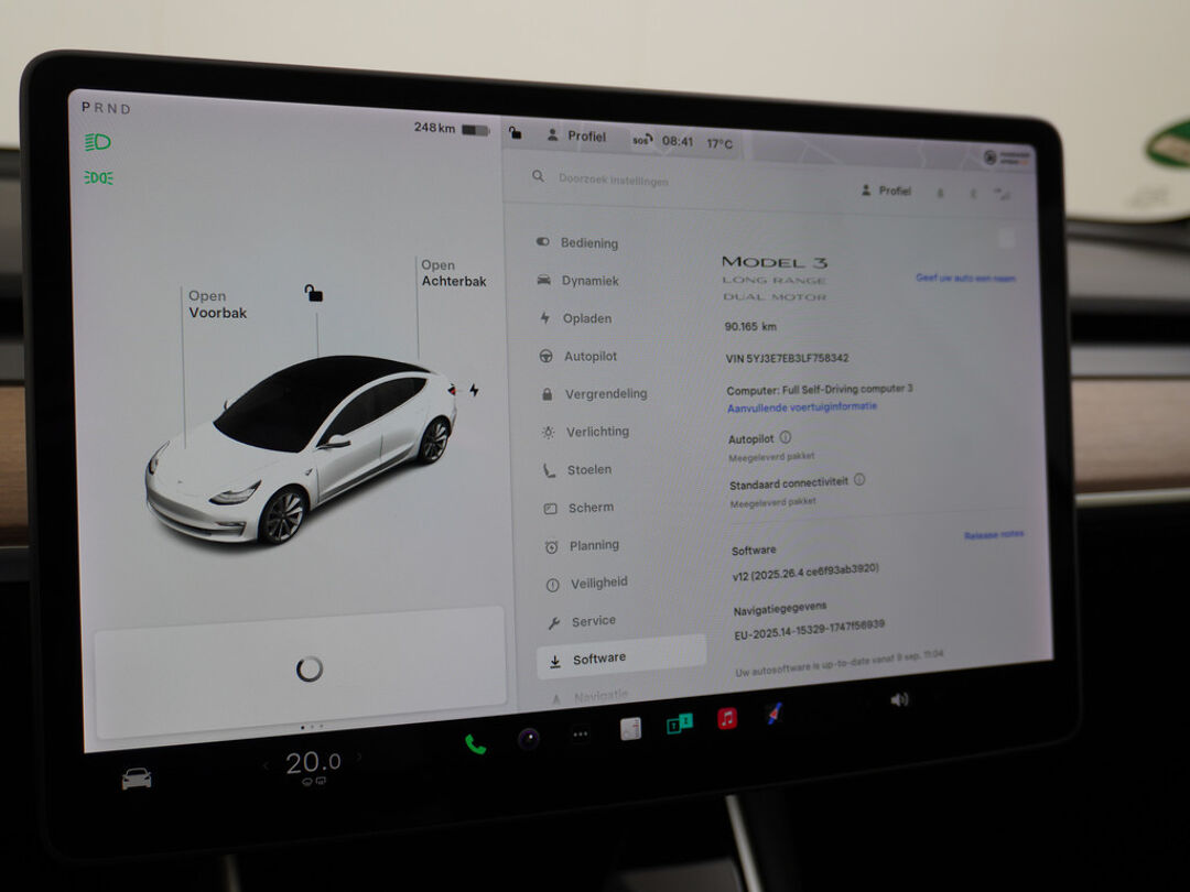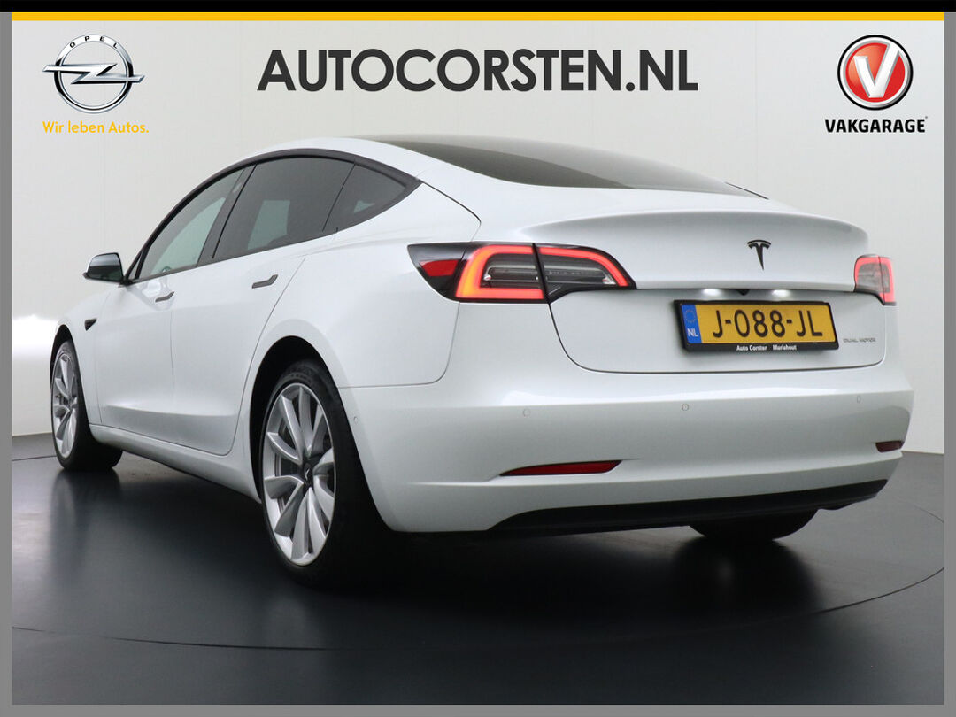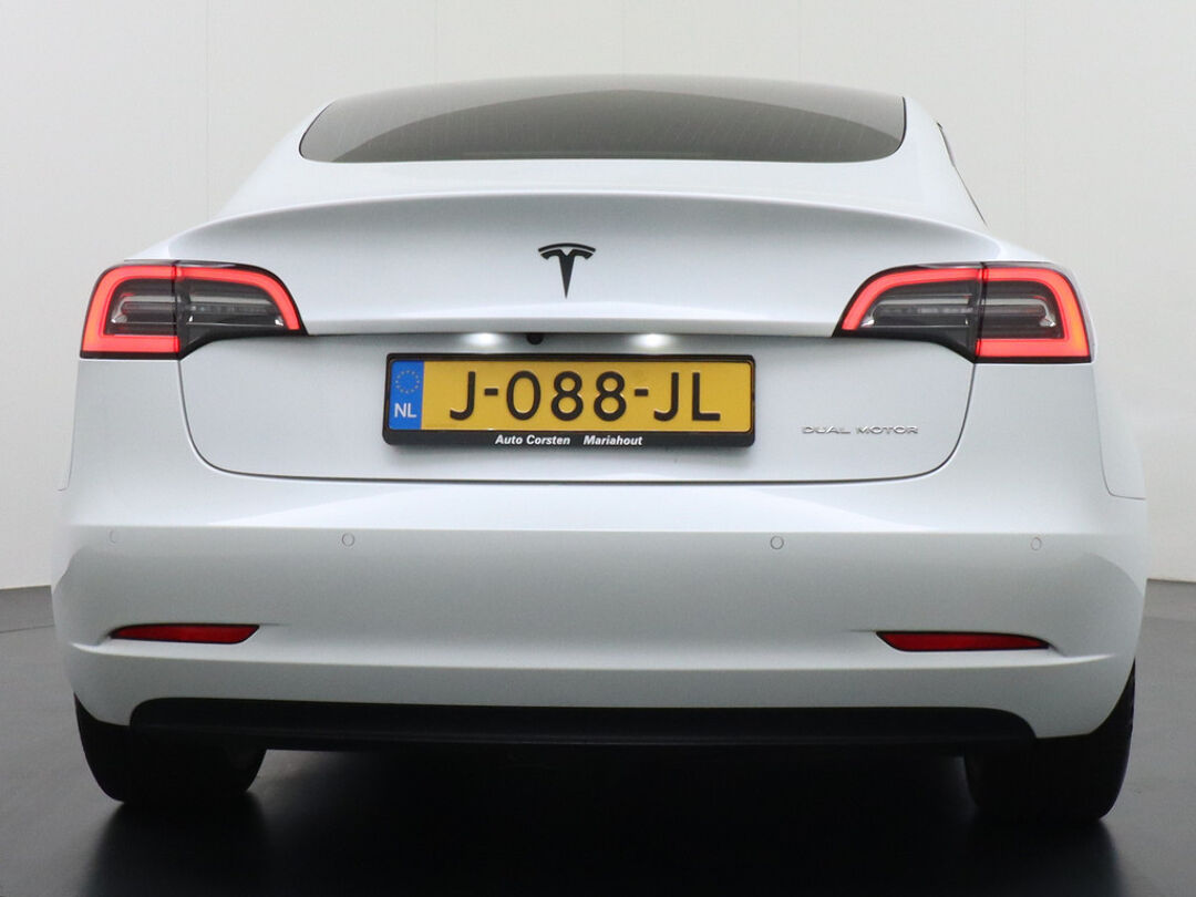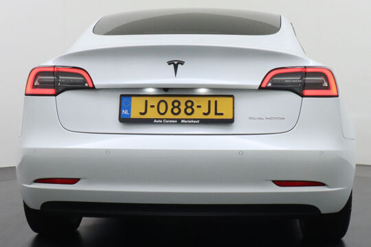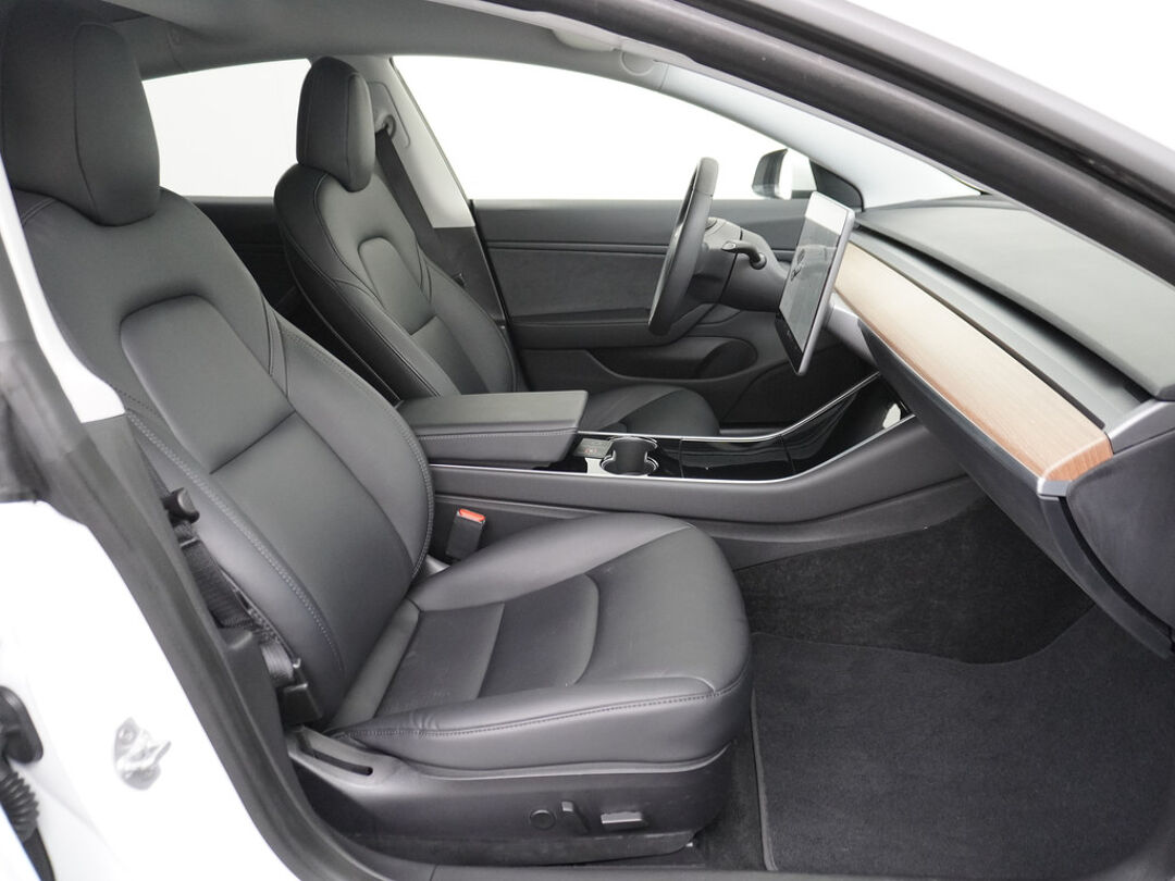 Hij biedt volop ruimte, deze Tesla Model 3, en dankzij zijn elektrische aandrijving is er ook plenty vermogen voor een dynamische rijstijl. CO2-uitstoot? Met de elektromotor rijdt u stil en schoon! Een krachtige motor geeft deze auto zijn sportieve prestaties. 4x4, 4WD... Deze auto staat maximaal stevig op de banden dankzij de vierwielaandrijving. Deze Tesla is voorzien van een mooie en comfortabele lederen bekleding. Zit u goed? De stoelen zijn eenvoudig instelbaar dankzij de elektrische bediening met geheugen. Het glazen panoramadak laat meer licht binnen in het interieur en zorgt voor een magnifiek uitzicht naar buiten. Ook de passagiers worden verwend, door de verwarmde achterbank. Verder is de Tesla uitgerust met: elektrisch verstelbare stuurkolom, 19 inch lichtmetalen velgen, LED-dagrijverlichting, getint glas, in delen neerklapbare achterbank en LED-achterlichten.