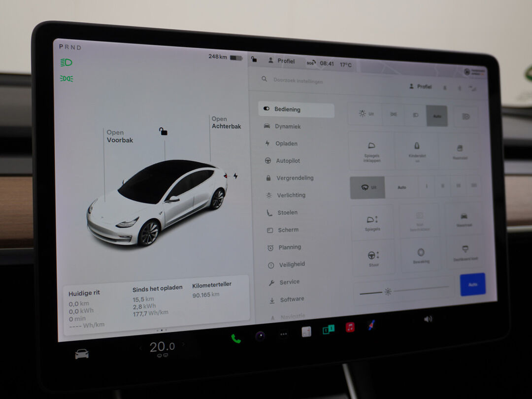 De nieuwste veiligheidssystemen komen in deze Tesla Model 3 samen. Forward collision warning waarschuwt bij een dreigende aanrijding en vermindert de gevolgen van een ongeval. Deze Tesla Model 3 heeft als mooie veiligheidsoptie de lane assist die u binnen de lijnen op de weg houdt. U bent mede dankzij dodehoekdetectie en autonoom remsysteem steeds veilig onderweg.