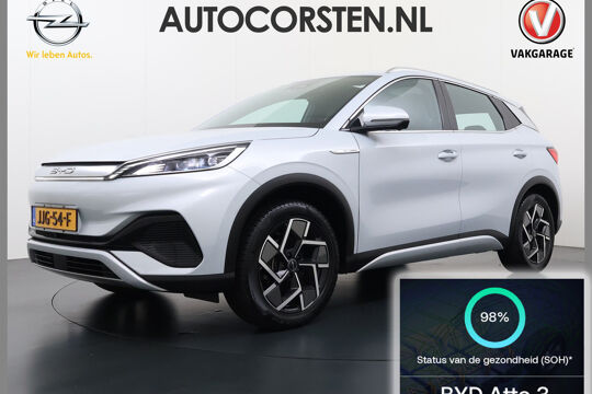 Innovatieve toptechniek en een uitgesproken karakter. De byd ATTO 3 is een onderscheidende auto met een elektrische aandrijflijn. De techniek van deze auto is radicaal anders dan u gewend bent. U rijdt zacht zoemend naar uw bestemming, de actieradius van de accu's is ruimschoots voldoende voor de meeste dagelijkse ritten. Op de teller van deze dealeronderhouden auto staat slechts 18317 kilometer. De auto is van bouwjaar 2022. Een krachtige motor geeft deze auto zijn sportieve prestaties. De leren bekleding is niet alleen mooi om te zien, maar zorgt ook voor comfort en een rijke uitstraling. Bestuurder en bijrijder krijgen een warm welkom: deze byd ATTO 3 is voorzien van verwarmbare voorstoelen. Schouders en onderrug krijgen een VIP-behandeling door de comfortstoelen. Life is easy! In ieder geval met dit elektrisch bediende glazen panoramadak. De elektrisch bedienbare achterklep opent met een druk op de knop. Nooit meer koude handen of koude vingers in de auto. Stuurverwarming zorgt ervoor dat het stuur behaaglijk warm aanvoelt. Bij de uitrusting van deze byd horen onder meer elektrisch verstelbare stuurkolom, 18 inch lichtmetalen velgen, LED koplampen, zwarte hemelbekleding, getint glas en in delen neerklapbare achterbank.