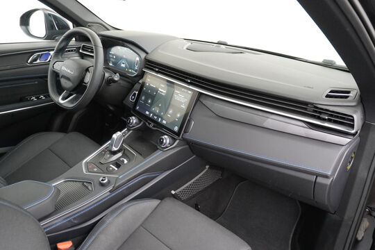 Aan boord van deze Lynk & Co houden verschillende geavanceerde systemen voor u de weg in de gaten. Ze waarschuwen u voor noodsituaties en kunnen in een aantal gevallen ook zelf ingrijpen. Wat deze auto ook kan, is lezen. Hij 'leest' voor u de verkeersborden tijdens de rit en attendeert u erop door ze op het dashboard te projecteren. Deze Lynk & Co 01 is ook behulpzaam als het gaat om een rechte koers. Het Lane-keeping systeem signaleert en corrigeert als u onbedoeld de rijstrooklijnen dreigt te overschrijden. Voor meer veiligheid detecteert deze auto het risico van een aanrijding tijdig via de forward collision warning. In deze Lynk & Co vinden we verder een dodehoekdetectie, hill hold functie, brake assist en vermoeidheidsherkenning.