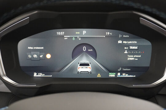 In één oogopslag zijn alle vitale functies afleesbaar dankzij het digitale dashboard. De hoogwaardige achteruitrijcamera en het display met hoge resolutie zorgen dat helemaal niets u meer ontgaat van wat er achter de auto gebeurt. Adaptive cruise control houdt de ingestelde snelheid vast en houdt afstand tot het voertuig voor u. De ingebouwde file assistent is een echte helper als het vaststaat onderweg. Het systeem meet ruimte tot de auto vóór u permanent en activeert zelfs de remmen als uw voorligger stopt. Een veiligheidsverhogende optie is de ingebouwde spraakbediening. Terwijl u uw ogen op de weg houdt, bedient u de auto met uw stem. Extra opties op deze auto zijn: full map navigatiesysteem, WIFI-hotspot, achteropkomend verkeer waarschuwing, automatische airconditioning, draadloos opladen en DAB ontvangst.