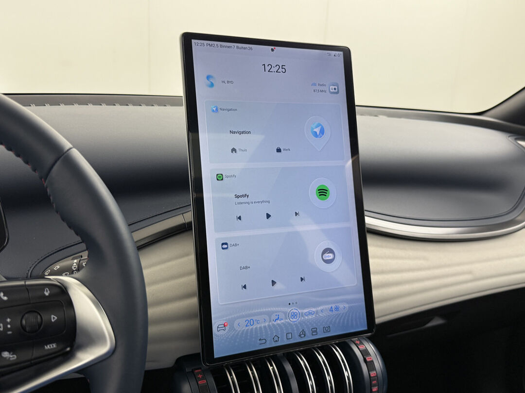 Ontdek de digitale mobiliteitswereld, met zijn dashboard dat alle noodzakelijke informatie projecteert om uw reis comfortabel en veilig te maken. Het gebruik van de 360 graden camera op deze auto vergemakkelijkt het parkeren aanzienlijk, vooral in krappe ruimtes. Met adaptive cruise control houdt de auto zelfstandig afstand tot uw voorligger. Een veiligheidsverhogende optie waarmee u comfortabel onderweg bent. Locatie, motorconditie, storingen... via Connected Services krijgt u alle vitale info over de auto door. Ook handig bij pech! Een belangrijke veiligheidsvoorziening is de bediening van het audio-installatiesysteem en het navigatiesysteem, via knoppen op het stuur en middels spraakbediening. DAB-ontvangst geeft daarbij een kraakheldere ontvangst. Ook is de byd uitgerust met: WIFI-hotspot, achteropkomend verkeer waarschuwing, kruisend verkeer detectie, automatische airconditioning, draadloos opladen en regensensor.