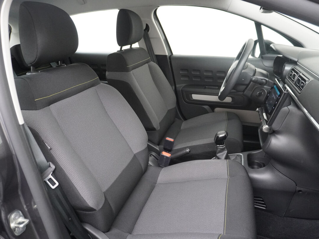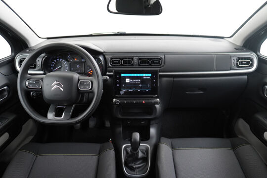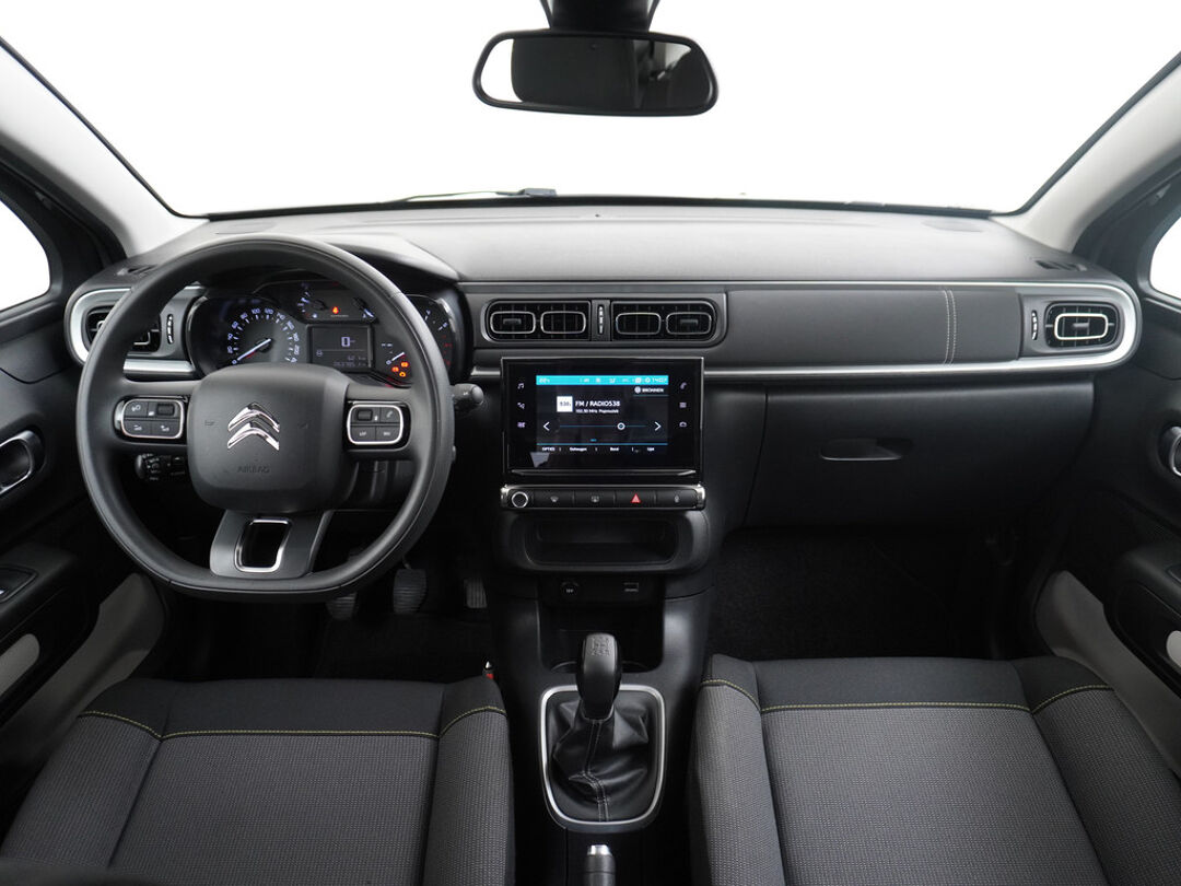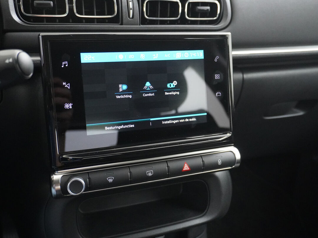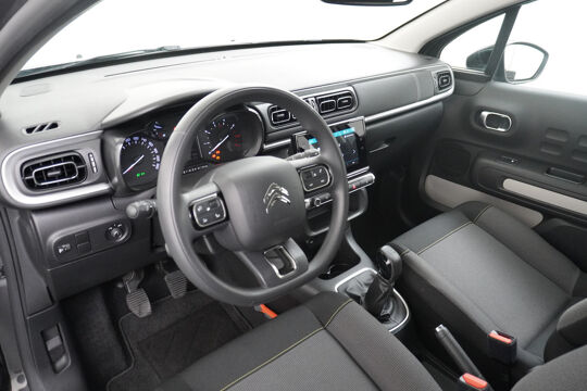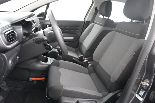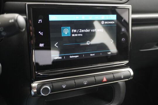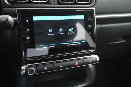 Geavanceerde technische systemen houden tijdens elke rit het verkeer in de gaten en reageren op potentieel gevaarlijke situaties. Verkeersbord-detectie herkent verkeersborden en toont deze op het instrumentarium van de auto. Deze Citroën C3 is ook behulpzaam als het gaat om een rechte koers. Het Lane-keeping systeem signaleert en corrigeert als u onbedoeld de rijstrooklijnen dreigt te overschrijden. De sensor van het forward collision warning-systeem registreert permanent de afstand tot voorliggers en grijpt in als een botsing dreigt. Ook helpen het hill hold functie, brake assist, vermoeidheidsherkenning en bandenspanningcontrolesysteem, uw rit tot een veilige rit te maken.