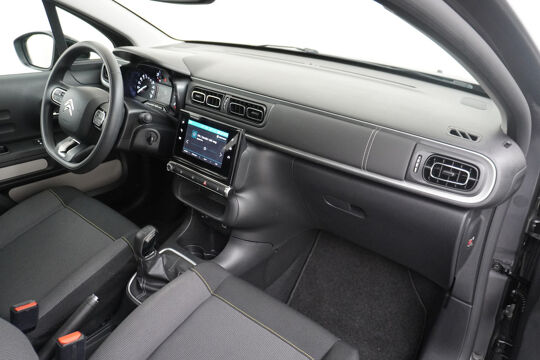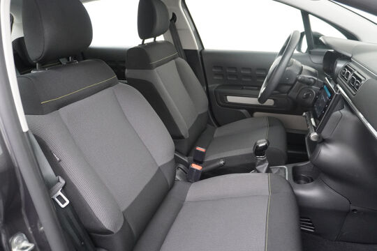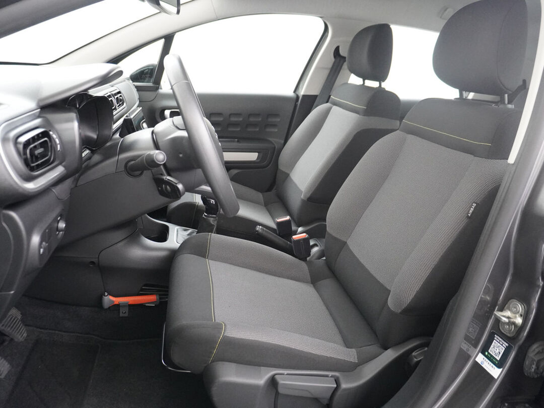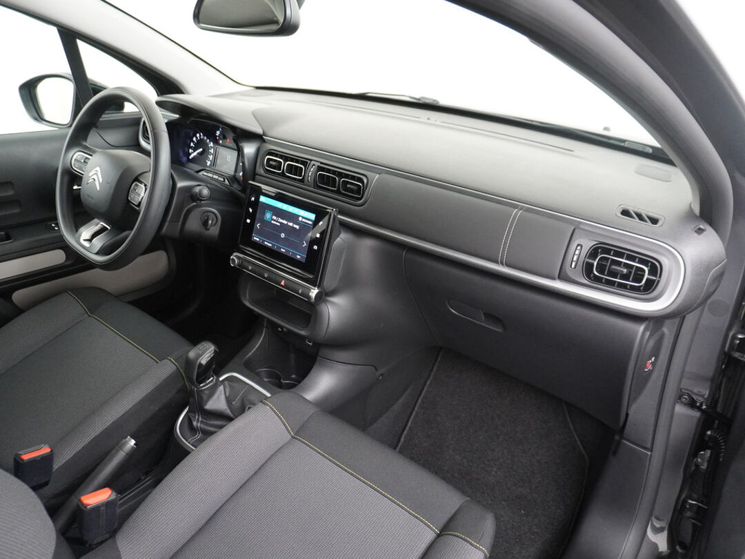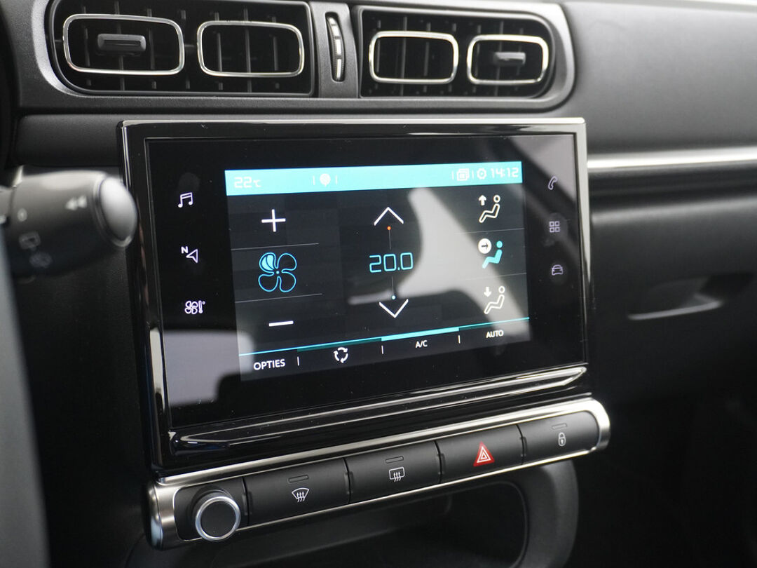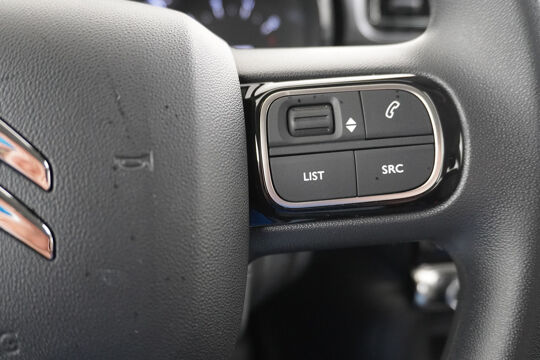 Geavanceerde technische systemen houden tijdens elke rit het verkeer in de gaten en reageren op potentieel gevaarlijke situaties. Verkeersbord-detectie herkent verkeersborden en toont deze op het instrumentarium van de auto. Deze Citroën C3 is ook behulpzaam als het gaat om een rechte koers. Het Lane-keeping systeem signaleert en corrigeert als u onbedoeld de rijstrooklijnen dreigt te overschrijden. De sensor van het forward collision warning-systeem registreert permanent de afstand tot voorliggers en grijpt in als een botsing dreigt. Ook helpen het hill hold functie, brake assist, vermoeidheidsherkenning en bandenspanningcontrolesysteem, uw rit tot een veilige rit te maken.