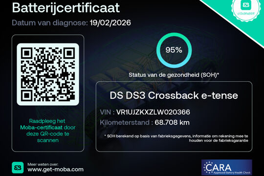 Milieubewust rijden en elke kilometer genieten. Het kan met deze elektrische DS 3 Crossback. De elektromotor is stil en schoon. En met een verrassend grote actieradius! In deze DS profiteert u onder andere ook van: 17 inch lichtmetalen velgen, LED-dagrijverlichting, zwarte hemelbekleding, in hoogte verstelbare passagiersstoel en donker getint glas achter.