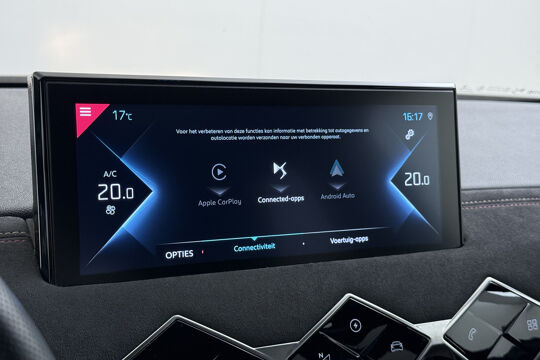 Voor een goed en duidelijk overzicht onderweg is het digitale dashboard uitermate slim ingedeeld. Kies de muziek waarvan u houdt, dankzij de DAB-radio klinkt het altijd geweldig. Intussen bedient u het audio-installatiesysteem en het navigatiesysteem met de knoppen op het stuur of met uw stem. Nooit meer te warm of te koud. De automatische airconditioning zorgt altijd voor de temperatuur die u kiest. Soms heeft u meer parkeerruimte dan u denkt. Maar soms ook niet. De parkeersensoren vertellen precies hoeveel. Het luxeniveau in deze DS is niet alleen gericht op comfort, maar ook op uw veiligheid. Tal van sensoren helpen u om de omgeving in de gaten te houden. De automatisch inschakelbare verlichting zorgt dat automatisch de verlichting wordt ingeschakeld als het donker wordt, wat bijvoorbeeld in tunnels erg handig is. En de regensensor zet de ruitenwissers aan zonder dat u eraan hoeft te denken. Ook is de DS uitgerust met: cruise control, automatisch dimmende binnenspiegel, lederen stuur, isofix-aansluiting, usb-aansluiting en centrale deurvergrendeling met afstandsbediening.