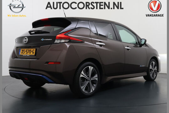 Elektrisch rijden is ontspannen rijden. Achter het stuur van deze Nissan LEAF kunt u zich in alle rust concentreren op de weg. De elektromotor laat u geluidloos over de weg gaan. Wat een verademing, en zoveel power ook nog! Het interieur van deze auto is bekleed met leer voor een ongeëvenaard luxueuze uitstraling. Hoe koud het buiten ook is, het verwarmbare stuurwiel en de verwarmbare voorstoelen brengen uw handen, vingers en lichaam snel weer op temperatuur. Tot de uitrusting van deze Nissan behoren ook 17 inch lichtmetalen velgen, LED koplampen, halflederen bekleding, donker getint glas achter, in delen neerklapbare achterbank en LED-achterlichten.