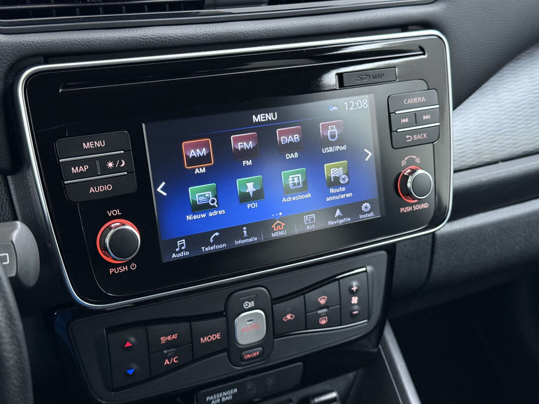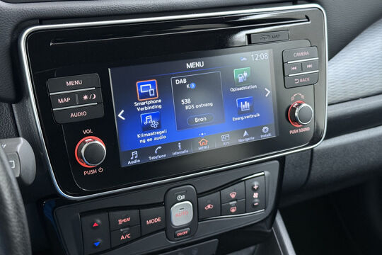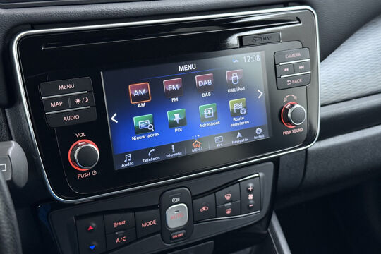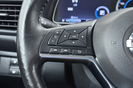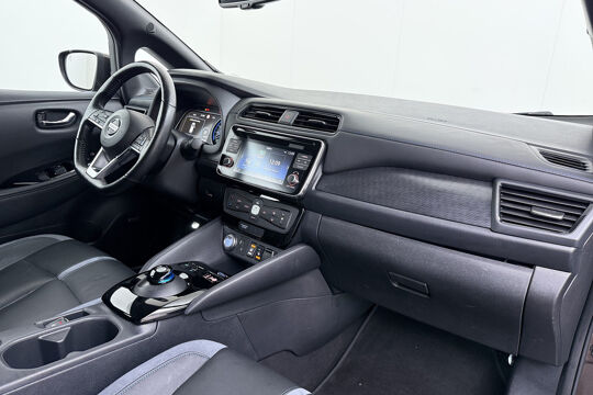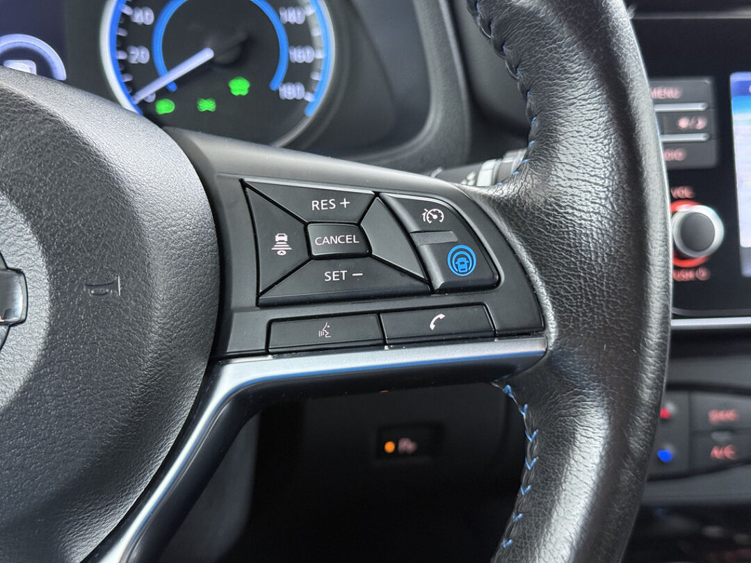 De nieuwste veiligheidssystemen komen in deze Nissan LEAF samen. Verkeersborddetectie herkent tijdelijke en permanente verkeersborden langs en boven de weg. Het Lane-keeping systeem garandeert dat u zich niet onverhoeds buiten de lijnen van de rijstrook begeeft. Ook als uw aandacht even verslapt, blijft de forward collision warning bij de wekker. Dreigt er een botsing met een voor- of tegenligger, dan waarschuwt het systeem direct. In deze Nissan vinden we verder een dodehoekdetectie, hill hold functie, autonoom remsysteem en bandenspanningcontrolesysteem.
