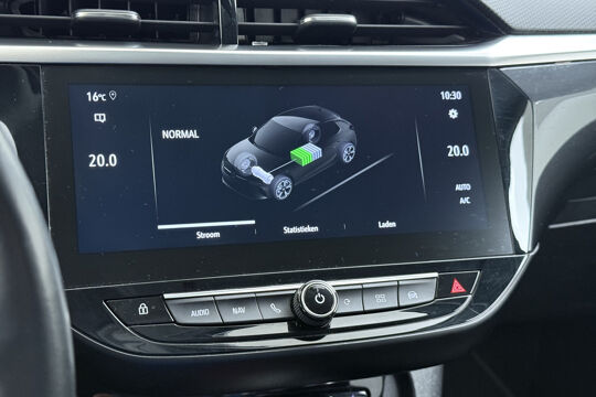 Zoals u mag verwachten van deze Opel Corsa-e is hij uitgerust met een reeks aan actieve veiligheidssystemen. U rijdt ook veiliger omdat deze auto voor u de verkeersborden langs de weg kan lezen. De belangrijkste borden worden op uw instrumentarium geprojecteerd, zodat u ze niet kunt missen. Mooi binnen de lijnen van de rijstrook blijven? Het Lane-keeping systeem helpt altijd een handje. In een noodsituatie waarschuwt forward collision warning bij een dreigende aanrijding met een voorligger. De veiligheid van deze auto wordt verder verhoogd door hill hold functie, vermoeidheidsherkenning en autonoom remsysteem.
