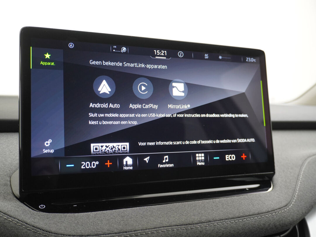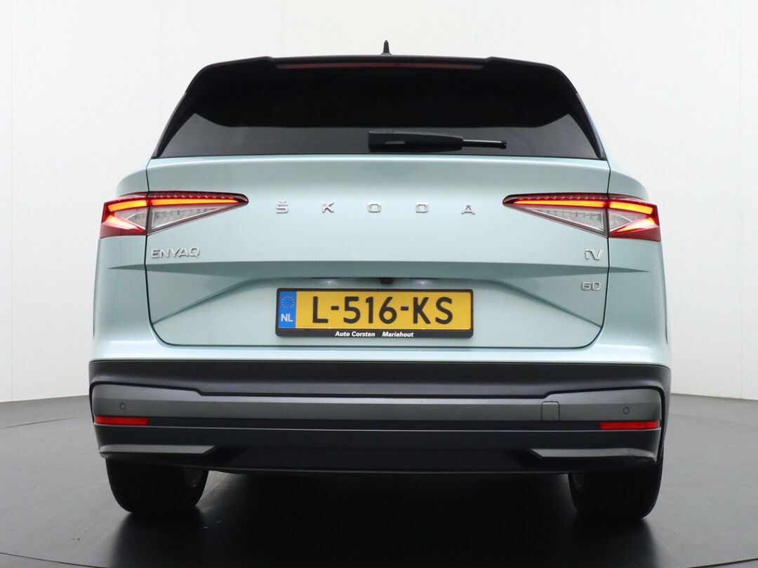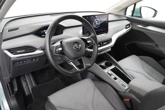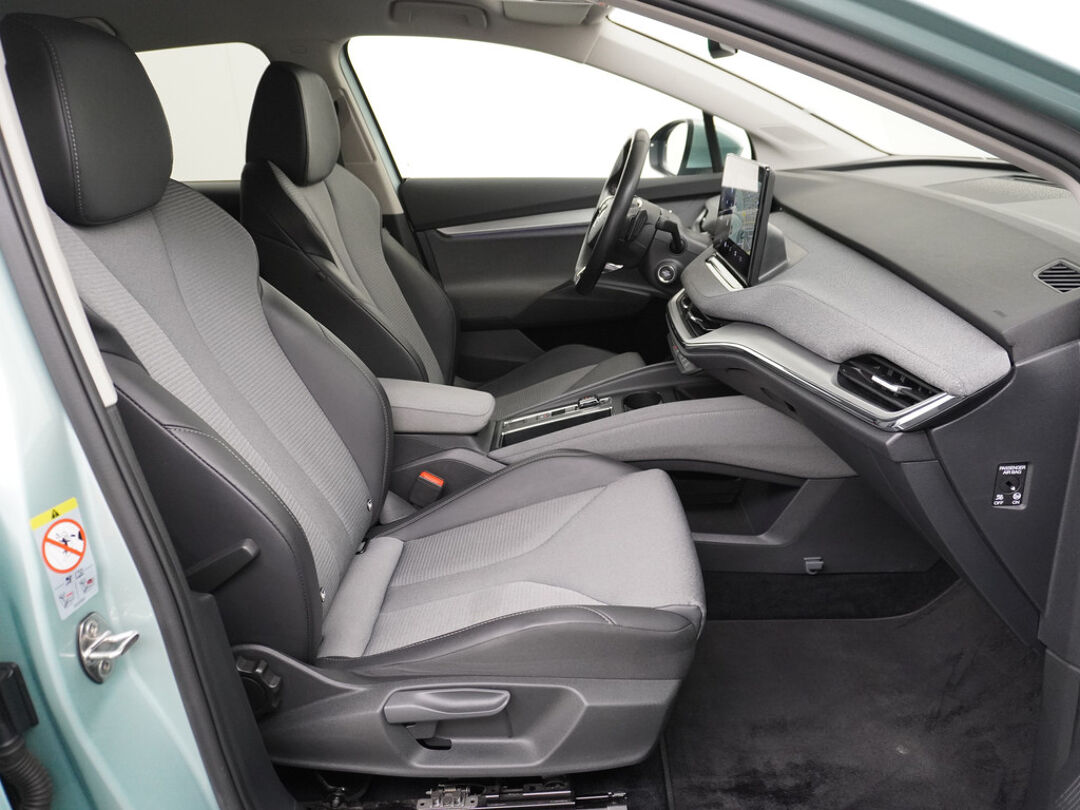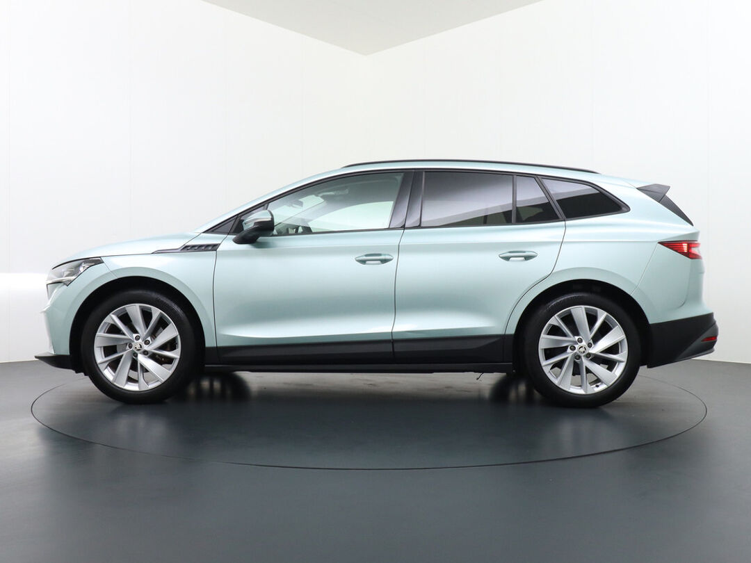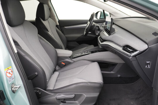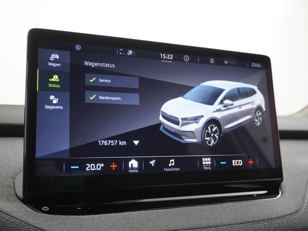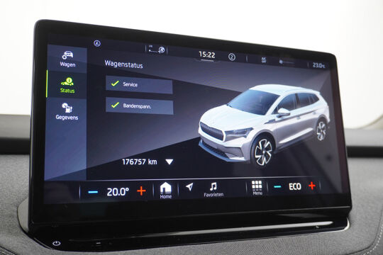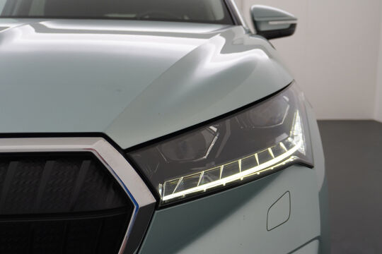 Elektrisch vermogen of onderscheidend vermogen? De ŠKODA Enyaq iV heeft het allebei in overvloed. Ervaar de kracht en stilte van de elektromotor tijdens het rijden. Een krachtige motor geeft deze auto zijn sportieve prestaties. De comfortstoelen van deze ŠKODA Enyaq iV staan bekend om zijn goede zithouding. Opvallend is de geavanceerde matrix LED-verlichting met daglichtkwaliteit. De koplampen dimmen automatisch het deel van de lichtstraal waar voor- of tegenliggers in rijden. De overige segmenten blijven aan en verlichten de weg maximaal. Ook 20 inch lichtmetalen velgen, donker getint glas achter, in delen neerklapbare achterbank, LED-achterlichten, verstelbare lendensteunen en variabele stuurbekrachtiging zijn aan boord.