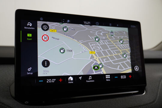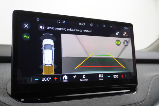 Dankzij het digitale dashboard leest u alle benodigde info gemakkelijk en overzichtelijk af. Overzichtelijk en veilig parkeren met de achteruitrijcamera. Overal en altijd. Dankzij Connected Services weet u precies waar uw auto geparkeerd staat. Ook andere functies, zoals bandenspanning en brandstofniveau, zijn via de app altijd onder handbereik. Het navigatiesysteem en het audio-installatiesysteem (met DAB-ontvangst!) bedient u met knoppen op het stuur of met gesproken commando's. Geef uw smartphone onderweg weer energie; zonder snoer, met de draadloze oplaadmogelijkheid voor telefoons. Uiteraard voorzien van Qi-technologie. De uitrusting van deze auto is met automatische airconditioning, regensensor, cruise control, sportstuurwiel, keyless entry en automatisch dimmende binnenspiegel behoorlijk compleet.