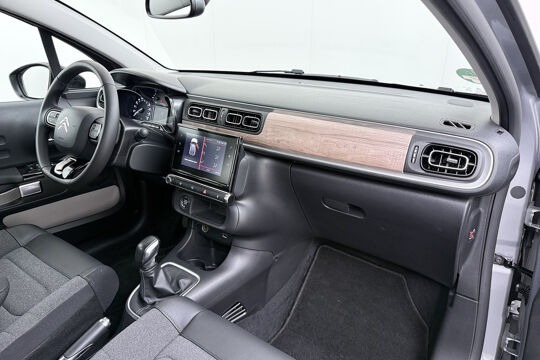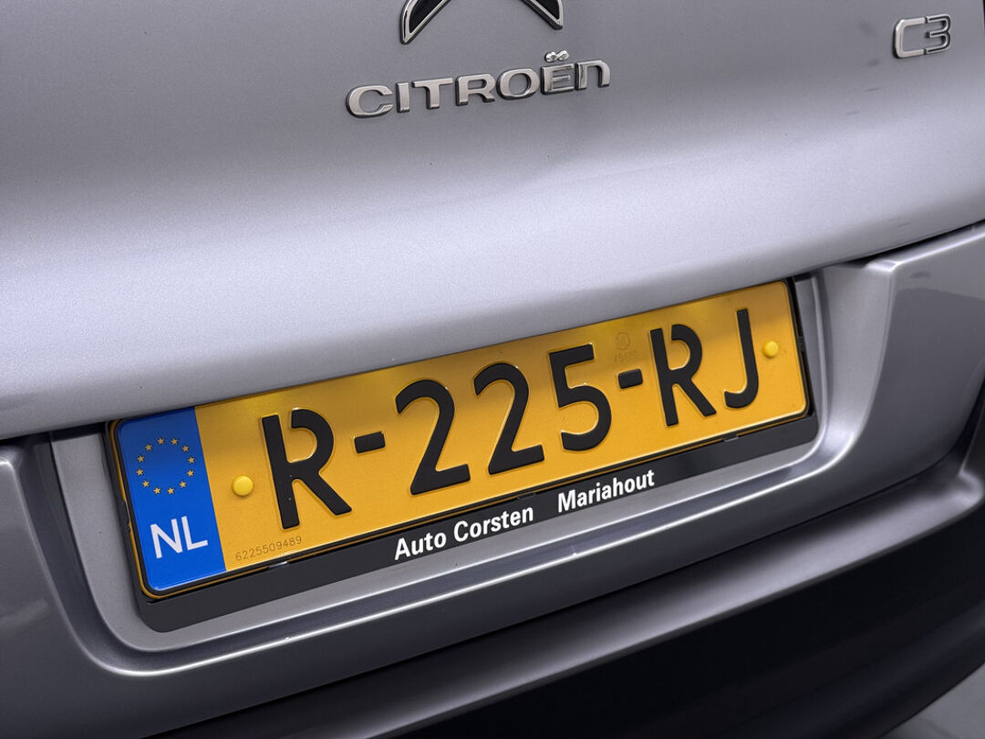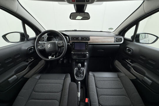 Spraaksturing is onderdeel van de uitrusting van deze auto. Met uw stem kunt u de belangrijkste voertuigfuncties bedienen. Appen met uw auto? Geen probleem. U kunt van overal contact opnemen, de functies controleren en activeren. U bedient 'm met remote services. Met het navigatiesysteem kiest u de snelste route naar uw eindbestemming. Deze Citroën C3 is voorzien van sensoren aan de achterzijde om een achteropkomend verkeer waarschuwing te geven als de afstand tussen u en een achterligger te klein is. Nooit meer te warm of te koud. De automatische airconditioning zorgt altijd voor de temperatuur die u kiest. De uitrusting van deze auto is met DAB ontvangst, regensensor, cruise control, keyless entry, automatisch dimmende binnenspiegel en lederen stuur behoorlijk compleet.