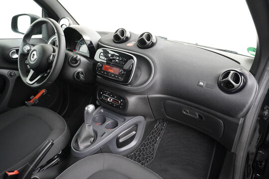 Genoeg plaats voor 2 personen, uitermate wendbaar in de binnenstad en altijd een passende parkeerplek. Kleine auto, groot voordeel! Deze Smart is voorzien van een pittige benzinemotor en een handgeschakelde vijfversnellingsbak. Lekker zitten doet u in de comfortstoelen van deze auto. De uitmonstering van deze auto wordt gecompleteerd door onder meer 15 inch lichtmetalen velgen, LED-dagrijverlichting, getint glas en snelheidsafhankelijke stuurbekrachtiging.