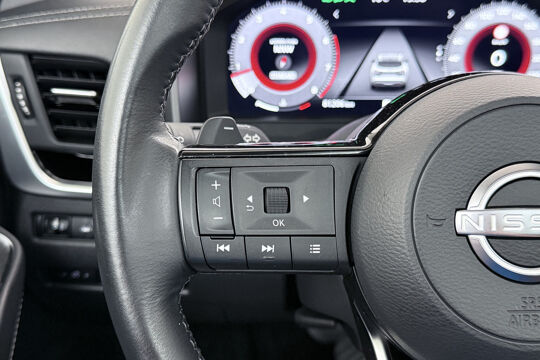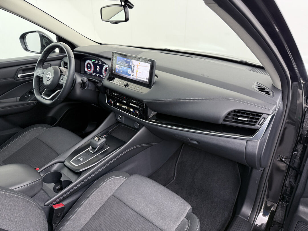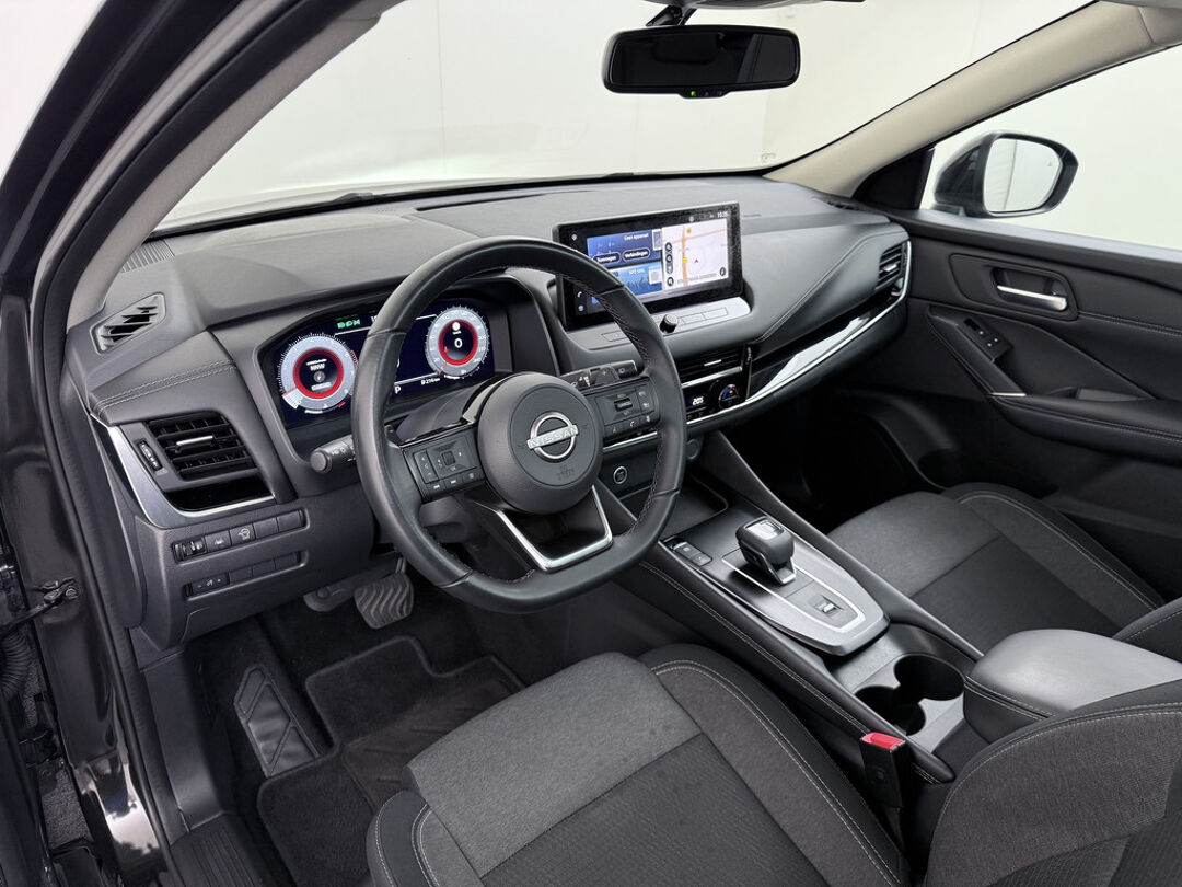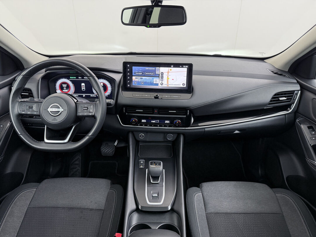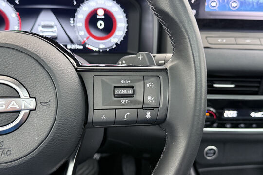 Het systeem controleert alle belangrijke functies en geeft die perfect weer via het digitale dashboard. De kracht van de 360 graden camera op deze auto resulteert in optimale zichtbaarheid en veiligheid. Adaptive cruise control is een comfortabele en veilige optie. Het systeem reguleert de snelheid en houdt automatisch afstand tot uw voorligger. Communiceren met uw auto? Dat gaat via remote services. Met uw smartphone maakt u waar dan ook contact om allerlei functies te checken of te activeren. U kunt het audio-installatiesysteem met DAB-ontvangst en het navigatiesysteem bedienen met de knoppen op het stuur. De Nissan is standaard voorzien van: WIFI-hotspot, achteropkomend verkeer waarschuwing, kruisend verkeer detectie, automatische airconditioning, schakelpaddles aan het stuur en draadloos opladen.