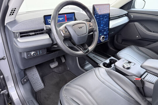 Nooit meer tanken. Een laadkabel volstaat om het accupakket van deze Ford Mustang Mach-E op te laden. Dankzij de geavanceerde batterijtechnologie hebt u met deze auto een rijbereik dat ruim voldoende is voor de meeste dagelijkse ritten. En u zult zien, de tijd die nodig is om de batterij op te laden, valt enorm mee. De krachtige motor geeft deze Ford uitstekende prestaties. Elke rit in deze Ford Mustang Mach-E heeft een tikje meer, dankzij het lederen interieur. Onderdeel van de uitgebreide uitrusting van deze auto is stoelverwarming. Opwarmen in koude dagen? Pak het verwarmd stuurwiel met beide handen aan! Ook elektrisch verstelbare stuurkolom, 18 inch lichtmetalen velgen, LED koplampen, donker getint glas achter en LED-achterlichten zijn aan boord.