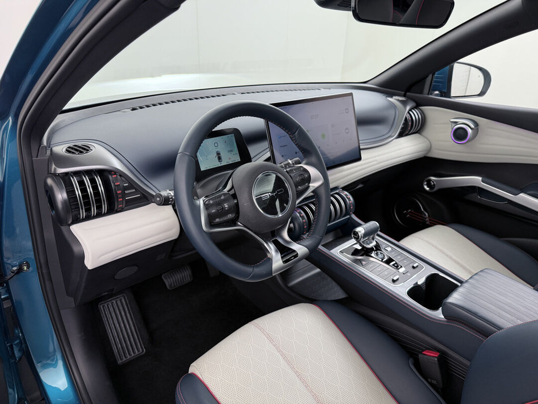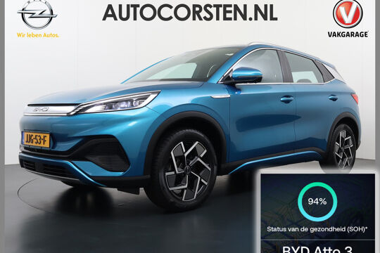 Autorijden zonder plaatselijke uitlaatemissies. byd maakt deze belofte waar met deze ATTO 3. Een elektrische auto is echt niet meer alleen voor korte ritjes. Het rijbereik van deze auto biedt voldoende ruimte voor uw dagelijkse ritten. Daardoor kan het opladen vaak 's nachts gebeuren. De auto heeft een opmerkelijk lage kilometerstand van slechts 13003 Een krachtige motor geeft deze auto zijn sportieve prestaties. Van binnen lijkt het allemaal uitermate ruim dankzij de vrije inval van daglicht via het elektrisch bediende glazen panorama dak. Comfort en luxe? Dat krijgt u door het lederen interieur. En optimaal gemak is er in de vorm van de elektrisch bedienbare achterklep. De meegeleverde stoelverwarming zorgt in no time voor een behaaglijk gevoel als het buiten koud is. Ook 18 inch lichtmetalen velgen, LED koplampen, in delen neerklapbare achterbank, LED-achterlichten en snelheidsafhankelijke stuurbekrachtiging zijn aan boord.