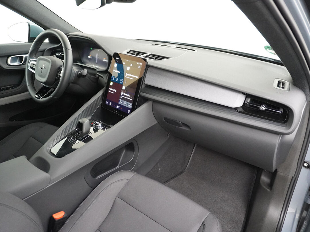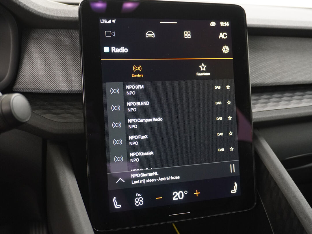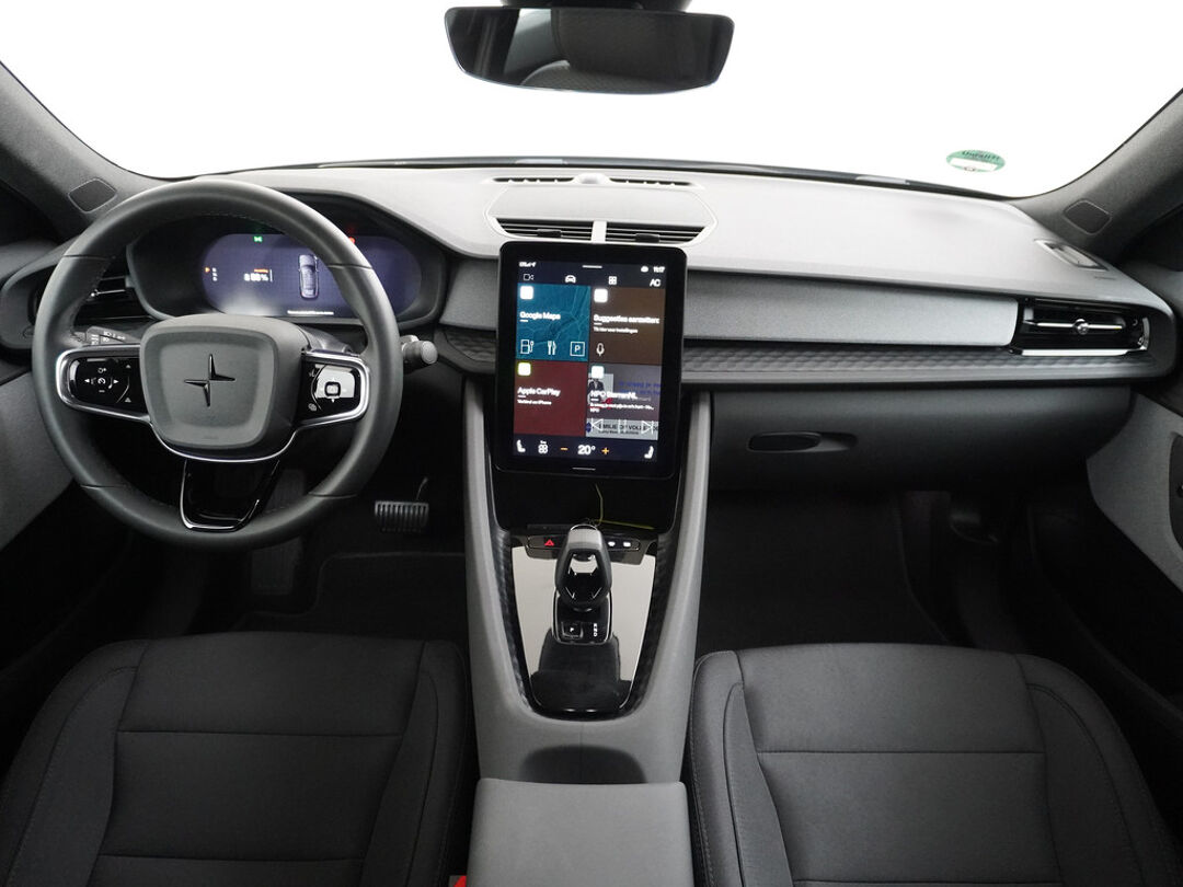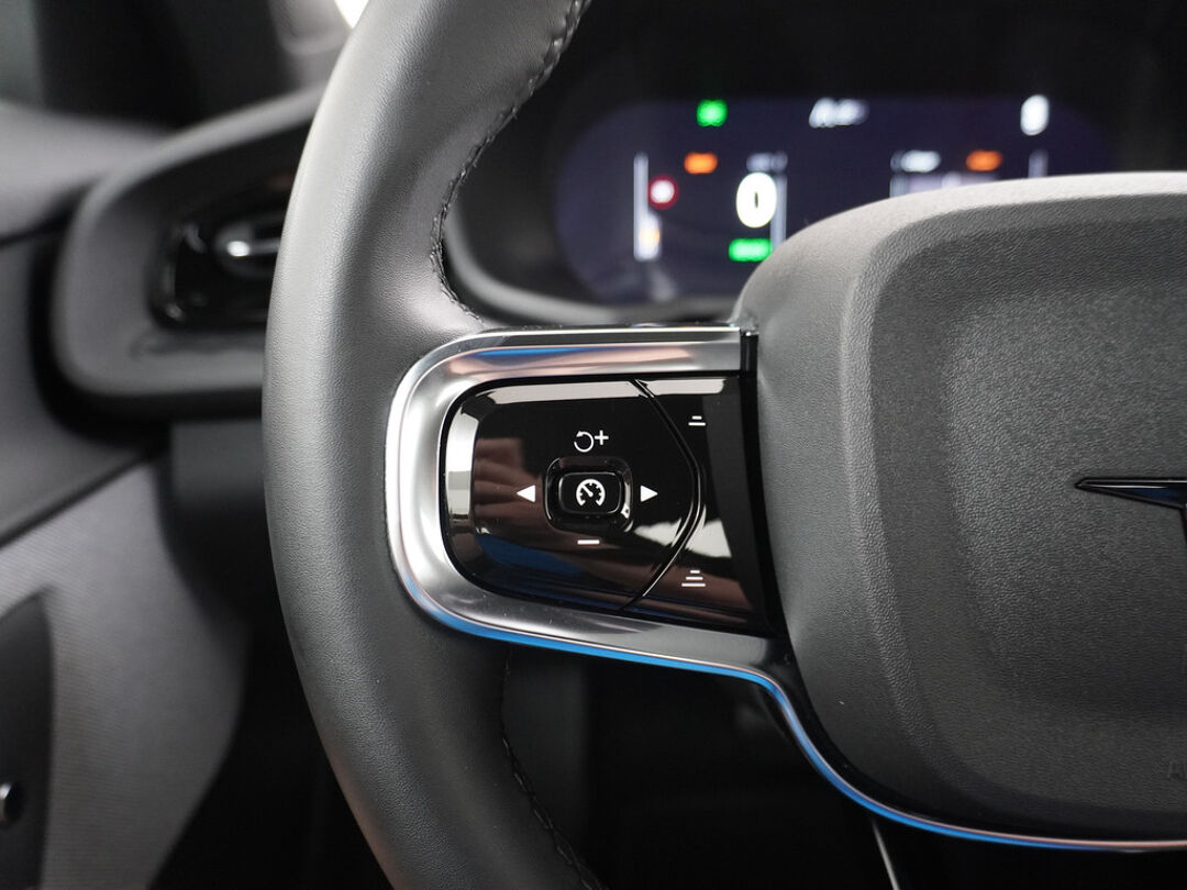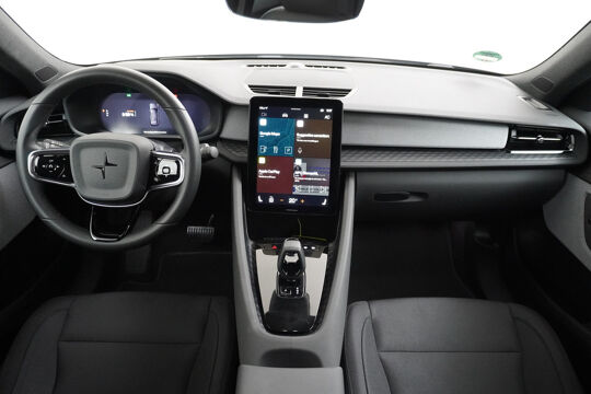 Begeef u op de geweldige rit door de digitale wereld van mobiliteit waar alles wat u wenst voor comfort en veiligheid, wordt geprojecteerd op het digitale dashboard. Geen nekkramp of spiegelwerk meer bij het achteruitrijden: de achteruitrijcamera kijkt en ziet alles! Zoals u van zo'n jonge auto mag verwachten, zijn hier ook de geavanceerde remote services aanwezig. Simpelweg met een app op uw smartphone controleert u op afstand de status van de auto en bedient u diverse functies. Laat u onderweg niet afleiden, de bediening van het audio-installatiesysteem en ook het navigatiesysteem gaat met knoppen op het stuur. Natuurlijk is de audio-installatie voorzien van DAB-ontvangst. Aan boord van deze Polestar 2 is een achteropkomend verkeer waarschuwing voor extra veiligheid. Extra opties op deze auto zijn: automatische airconditioning, regensensor, cruise control, keyless entry, automatisch dimmende buitenspiegels en isofix-aansluiting.