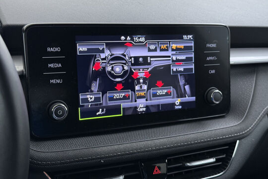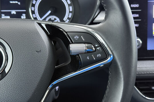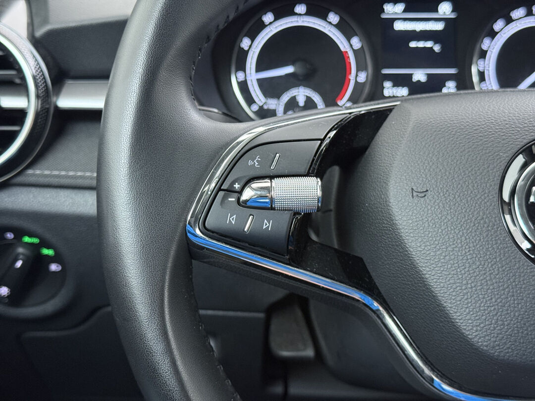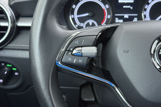 Connected Services voegt nog meer comfort en veiligheid toe aan deze auto. Terwijl het navigatiesysteem de ideale route voor u uitstippelt, geniet u van de kwaliteit van het audio-installatiesysteem met DAB-ontvangst. De bediening is bovendien gemakkelijk via knoppen op het stuur. In een auto als deze kunt u niet zonder automatische airconditioning, zodat de temperatuur altijd goed is. De parkeersensoren registreren alles. Ook dat ene paaltje dat net buiten uw gezichtsveld valt. De automatisch inschakelbare verlichting en regensensor zorgen dat onderweg automatisch de verlichting en de ruitenwissers worden ingeschakeld. Daarmee nemen ze u veel werk uit handen. De ŠKODA is standaard voorzien van: cruise control, keyless entry, automatisch dimmende binnenspiegel, lederen stuur, isofix-aansluiting en usb-aansluiting.