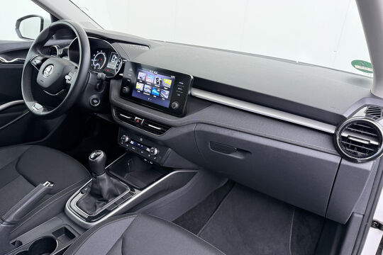 Deze ŠKODA Fabia maakt een voortreffelijke indruk. Hiermee mag je gezien worden in de stad én op de weg! De motor is zuinig maar pittig, en maakt een vlotte rijstijl mogelijk. De comfortstoelen geven precies de juiste ondersteuning voor rug en schouders. Tot de uitrusting van deze ŠKODA behoren ook 15 inch lichtmetalen velgen, LED koplampen, getint glas, in delen neerklapbare achterbank en LED-achterlichten.