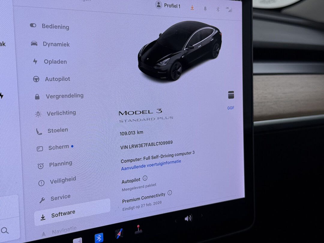 Hij levert uitstekende prestaties en doet dat met zorg voor het milieu. Maar tegelijk is de Tesla Model 3 ook gewoon een auto die u volop ruimte en comfort biedt. Dit is een auto uit het bouwjaar 2020, hij heeft 109013 kilometer gelopen. Milieuvriendelijk, stil en uitstekende rijprestaties: dat zijn de voordelen van de elektromotor. De krachtige motor geeft deze Tesla uitstekende prestaties. Het interieur van deze auto is bekleed met leer voor een ongeëvenaard luxueuze uitstraling. Neem plaats op de comfortabele stoelen. Dankzij de elektrische bediening en het geheugen is het eenvoudig om hierin de beste zitpositie te vinden. In weer en wind een cabriosensatie? Dat kan met het riante glazen panoramadak. U wordt in deze auto ook getrakteerd op elektrisch verstelbare stuurkolom, 18 inch lichtmetalen velgen, LED-dagrijverlichting, getint glas, in delen neerklapbare achterbank en LED-achterlichten.