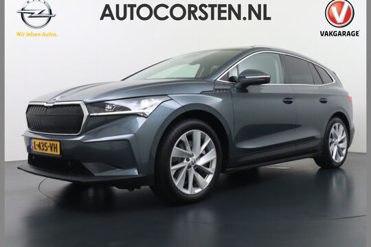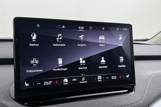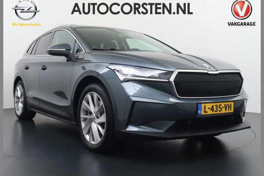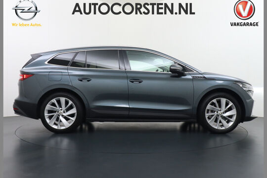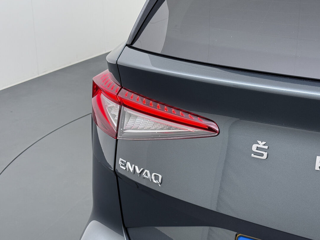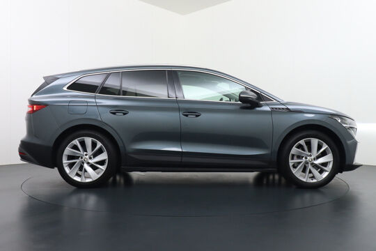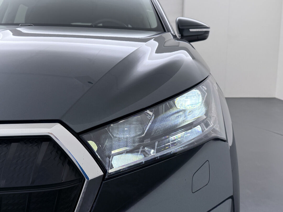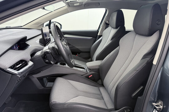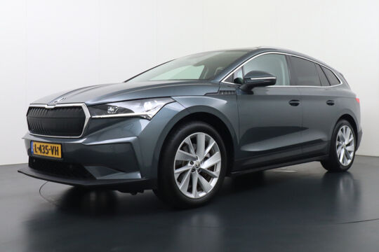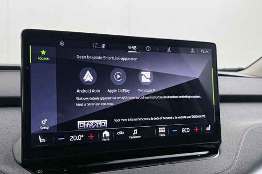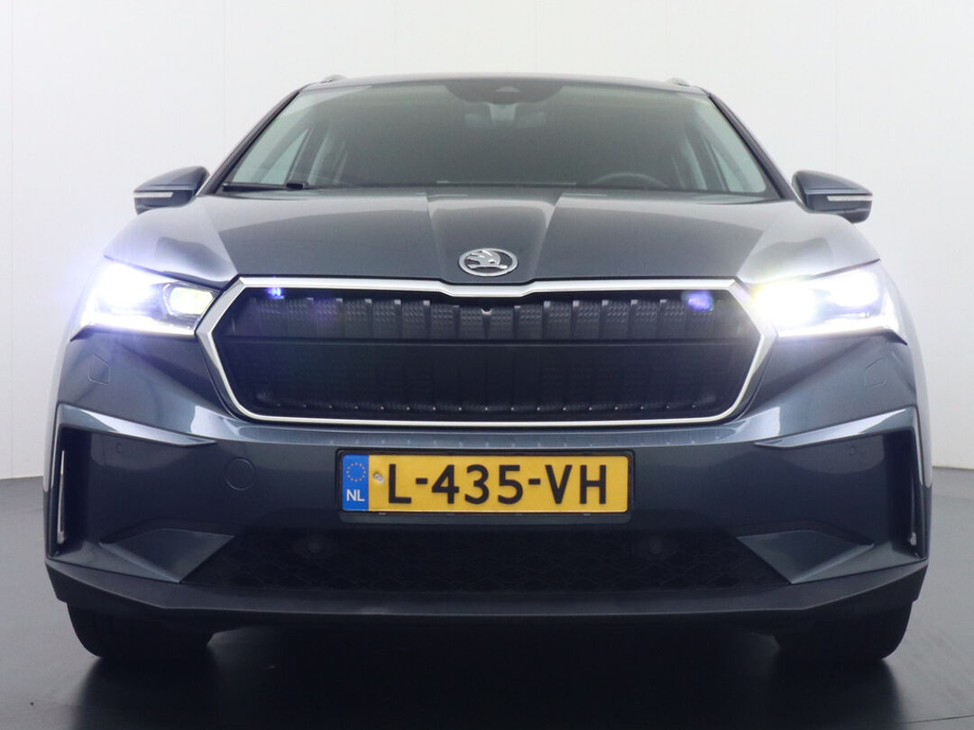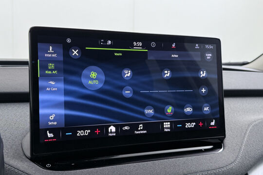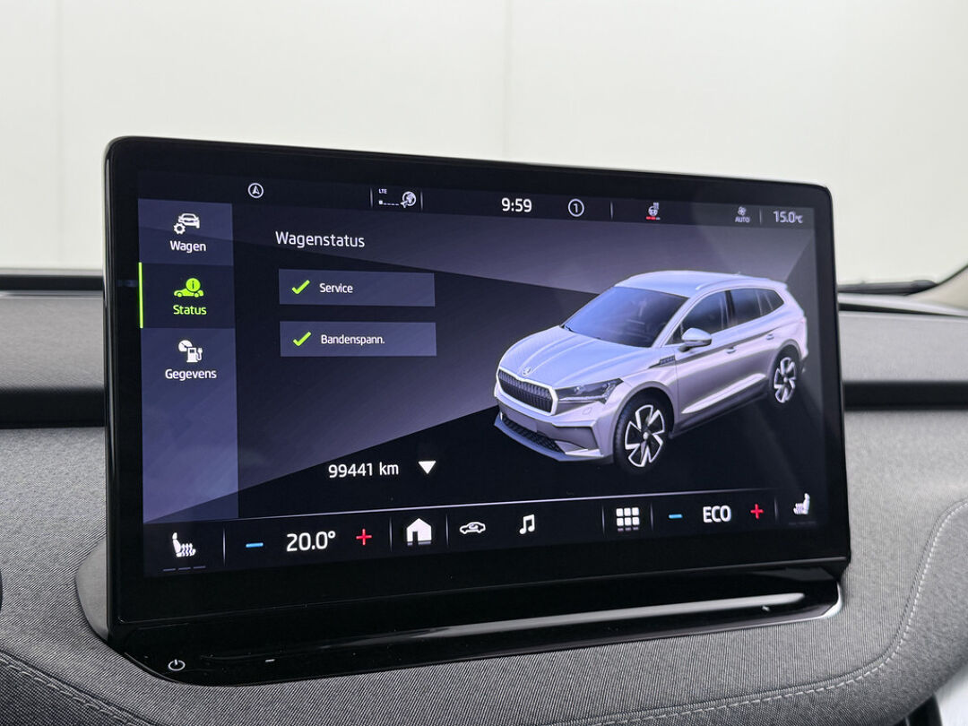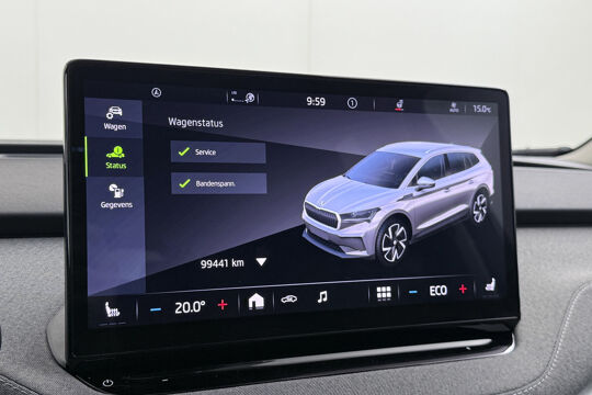 Het aërodynamische ontwerp is aantrekkelijk en functioneel. Dankzij de gunstige stroomlijn haalt u met deze ŠKODA Enyaq iV meer kilometers uit het accupakket. Gas geven is er met de elektromotor niet meer bij. Stil snelheid maken wel! De krachtige motor geeft deze ŠKODA uitstekende prestaties. Kou en regen maken geen indruk. Binnen zit u comfortabel dankzij de stoelverwarming. De achterklep opent automatisch met een druk op de knop. Handig als u met volle handen staat. Geniet van de lichtinval en het uitzicht van het grote glazen panoramadak. Voorzien van matrix LED-verlichting. De auto dimt precies dat deel van de lichtstraal waar de voor- of tegenliggers in rijden. De overige segmenten blijven aan en verlichten de weg. In deze ŠKODA profiteert u onder andere ook van: 20 inch lichtmetalen velgen, halflederen bekleding, donker getint glas achter, in delen neerklapbare achterbank, LED-achterlichten en verstelbare lendensteunen.