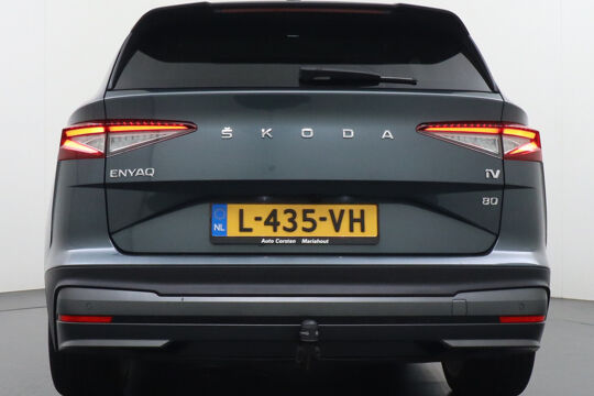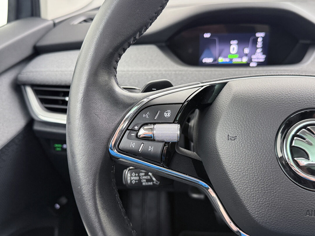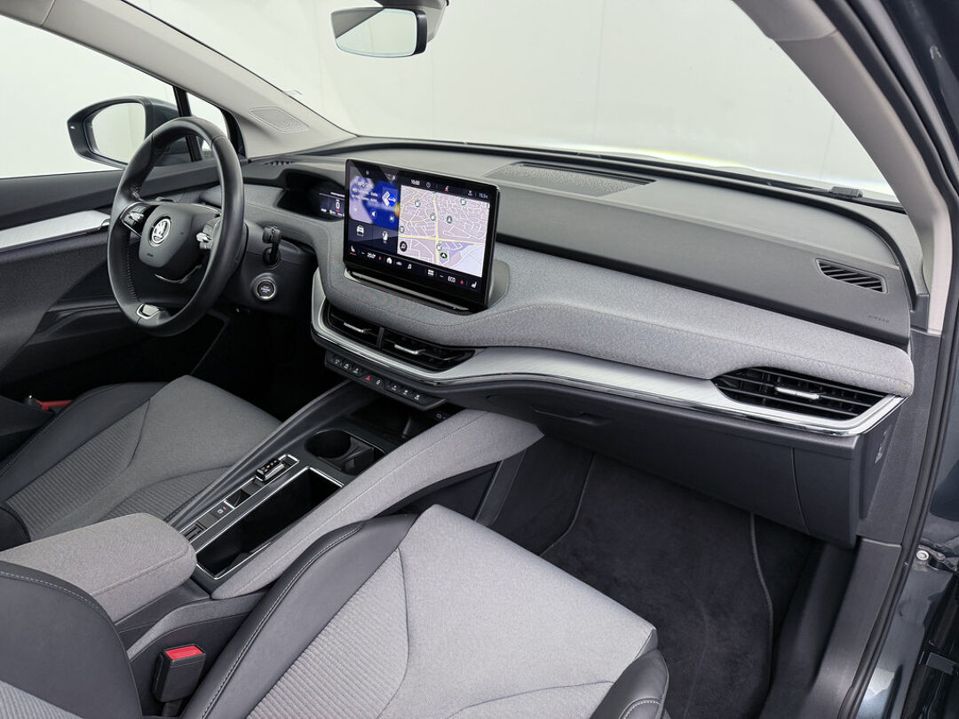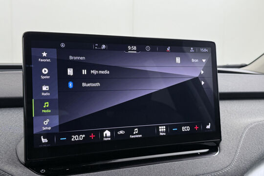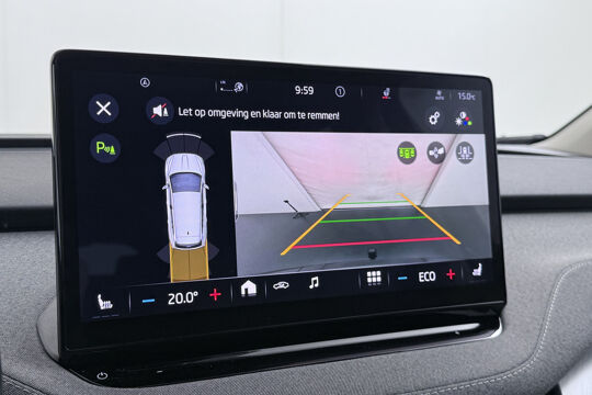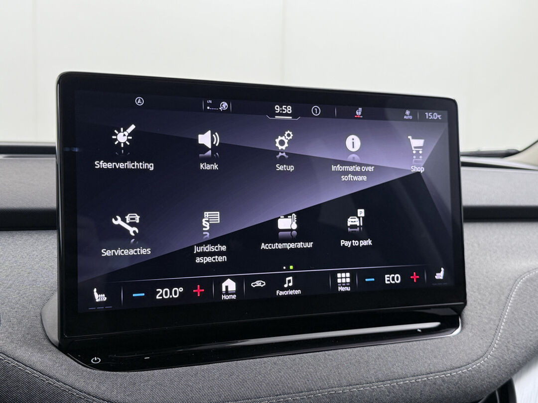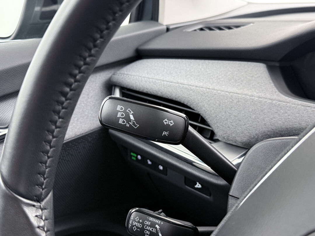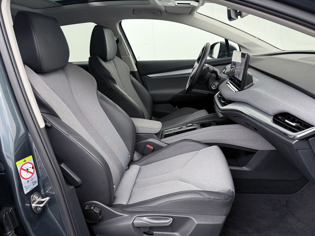 Het aërodynamische ontwerp is aantrekkelijk en functioneel. Dankzij de gunstige stroomlijn haalt u met deze ŠKODA Enyaq iV meer kilometers uit het accupakket. Gas geven is er met de elektromotor niet meer bij. Stil snelheid maken wel! De krachtige motor geeft deze ŠKODA uitstekende prestaties. Kou en regen maken geen indruk. Binnen zit u comfortabel dankzij de stoelverwarming. De achterklep opent automatisch met een druk op de knop. Handig als u met volle handen staat. Geniet van de lichtinval en het uitzicht van het grote glazen panoramadak. Voorzien van matrix LED-verlichting. De auto dimt precies dat deel van de lichtstraal waar de voor- of tegenliggers in rijden. De overige segmenten blijven aan en verlichten de weg. In deze ŠKODA profiteert u onder andere ook van: 20 inch lichtmetalen velgen, halflederen bekleding, donker getint glas achter, in delen neerklapbare achterbank, LED-achterlichten en verstelbare lendensteunen.