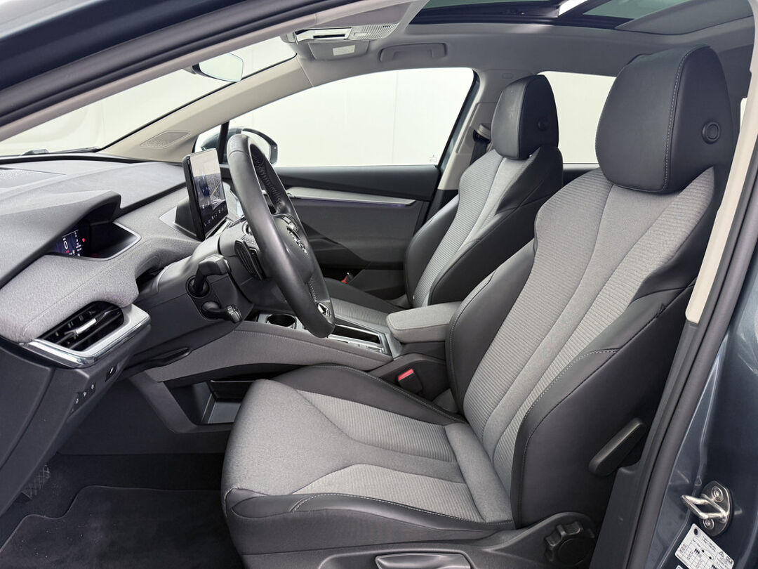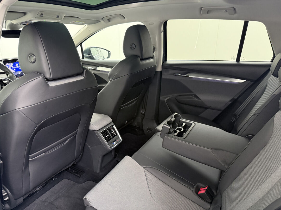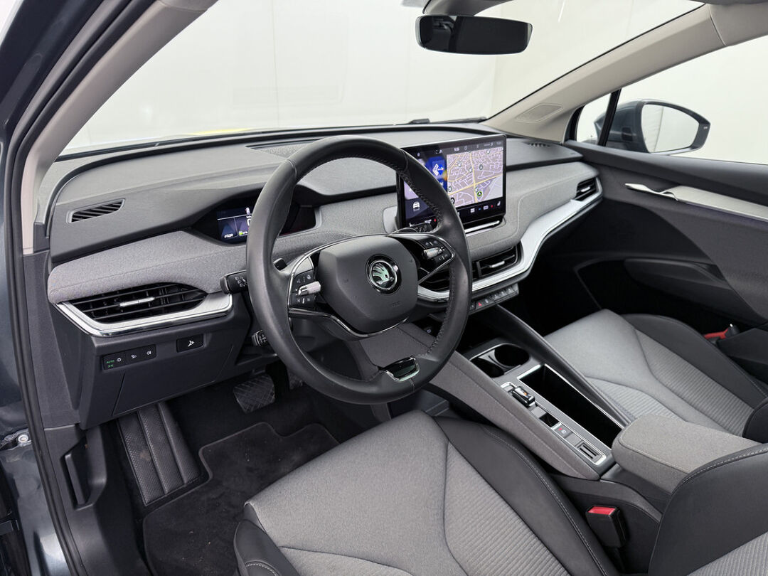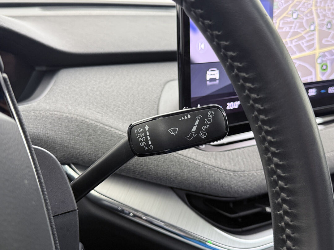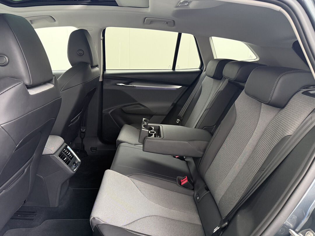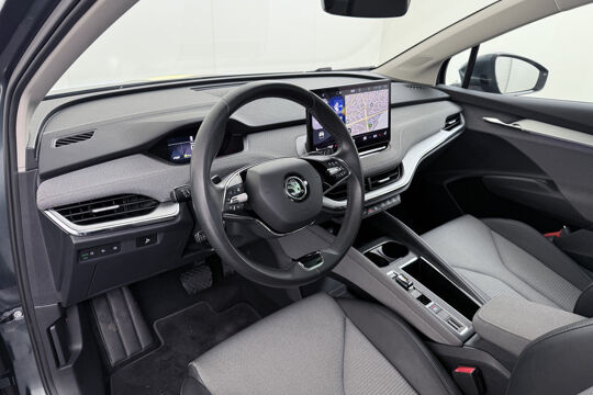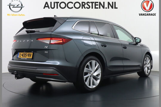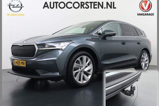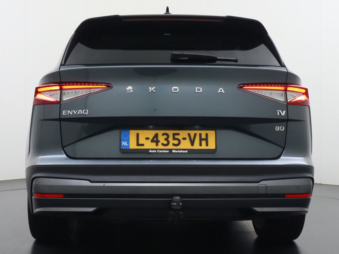 Het aërodynamische ontwerp is aantrekkelijk en functioneel. Dankzij de gunstige stroomlijn haalt u met deze ŠKODA Enyaq iV meer kilometers uit het accupakket. Gas geven is er met de elektromotor niet meer bij. Stil snelheid maken wel! De krachtige motor geeft deze ŠKODA uitstekende prestaties. Kou en regen maken geen indruk. Binnen zit u comfortabel dankzij de stoelverwarming. De achterklep opent automatisch met een druk op de knop. Handig als u met volle handen staat. Geniet van de lichtinval en het uitzicht van het grote glazen panoramadak. Voorzien van matrix LED-verlichting. De auto dimt precies dat deel van de lichtstraal waar de voor- of tegenliggers in rijden. De overige segmenten blijven aan en verlichten de weg. In deze ŠKODA profiteert u onder andere ook van: 20 inch lichtmetalen velgen, halflederen bekleding, donker getint glas achter, in delen neerklapbare achterbank, LED-achterlichten en verstelbare lendensteunen.