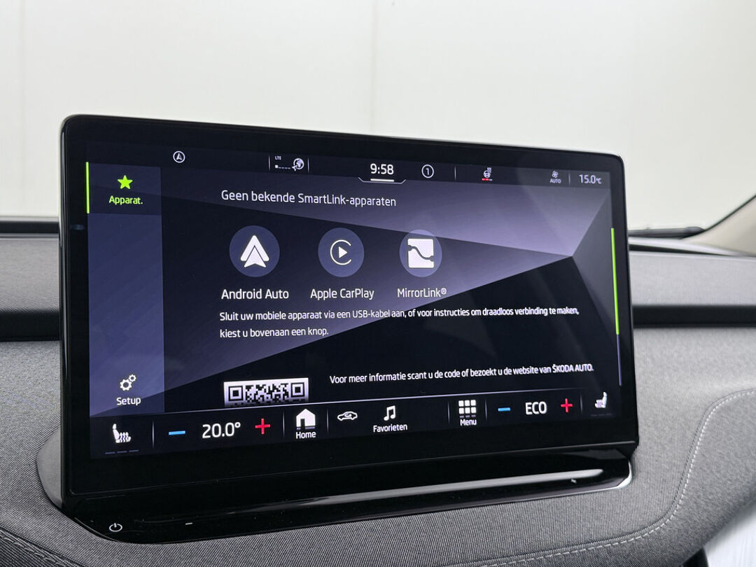 Via het digitale dashboard bent u permanent op de hoogte van alle informatie die u nodig heeft voor een veilige rit. Comfortabel en veilig achteruitrijden gaat gemakkelijker dan ooit met behulp van de achteruitrijcamera. Adaptive cruise control is veilig en comfortabel. De snelheidsregelaar houdt automatisch afstand tot het voertuig dat voor u rijdt. Filerijden? Doodvermoeiend. Daarom helpt de file assistent zo nodig een handje. Door automatisch afstand te houden, en te stoppen als uw voorligger stilstaat. Praat tegen deze auto en de auto doet wat u wilt dankzij de ingebouwde spraakbediening. Deze ŠKODA is voorzien van elektrisch inklapbare trekhaak, connected drive services, full map navigatiesysteem, automatische airconditioning, schakelpaddles aan het stuur en draadloos opladen.