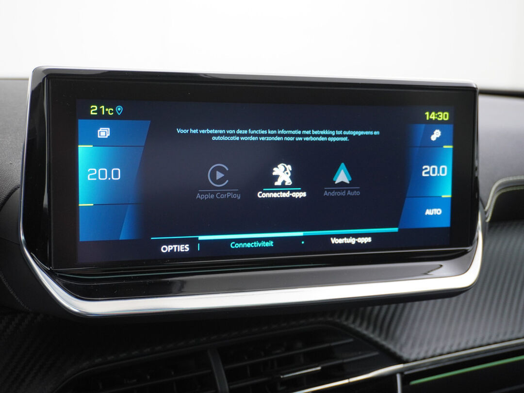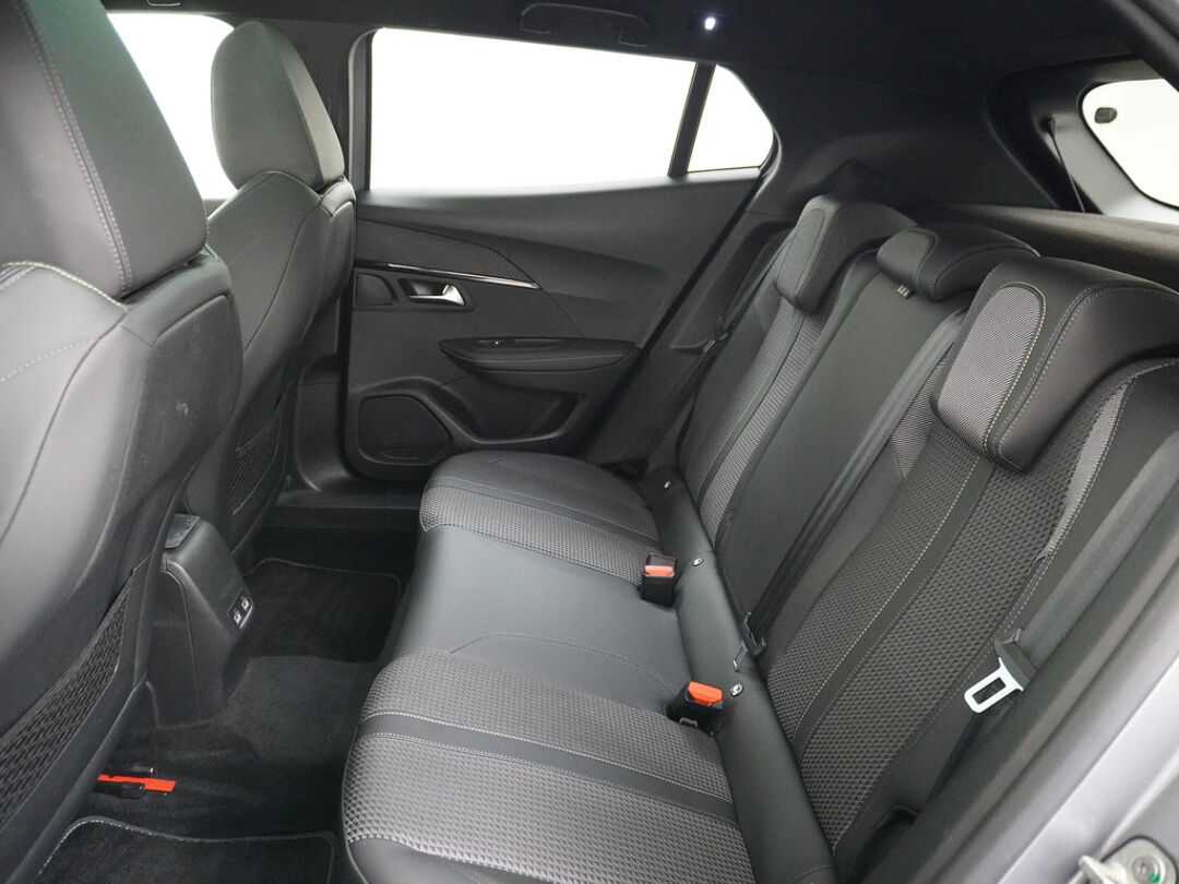 Duik in de digitale wereld van mobiliteit waar alles wat u nodig heeft voor een comfortabele en veilige rit, wordt geprojecteerd op het digitale dashboard. Hoeveel ruimte heeft u nog bij het inparkeren? De achteruitrijcamera brengt helder in beeld wat zich achter de auto bevindt en geeft een geluidssignaal. Met Connected Services wordt iedere rit nóg veiliger. Het navigatiesysteem en het audio-installatiesysteem (met DAB-ontvangst!) bedient u met knoppen op het stuur of met gesproken commando's. Deze Peugeot e-2008 is een complete auto anno nu, en dat merk je. Bijvoorbeeld door de aanwezige draadloze oplaadmogelijkheid voor telefoons. Deze Peugeot is voorzien van automatische airconditioning, regensensor, cruise control, automatisch dimmende binnenspiegel, lederen stuur en isofix-aansluiting.
