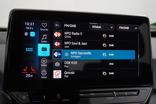 Met adaptive cruise control houdt deze auto automatisch afstand tot uw voorligger. Met uw smartphone maakt u overal contact met de auto. Remote services geven direct inzicht in uiteenlopende functies en zijn op afstand te activeren. In deze ID.3 vindt u niet alleen schakelaars op het stuur om het full map navigatiesysteem te bedienen en het audiosysteem met DAB-ontvangst, maar er is ook spraakbediening. Telefoonaccu in het rood? Laad 'm simpel op met de draadloze oplaadmogelijkheid voor telefoons. Het comfort wordt verhoogd door de aanwezige automatische airconditioning. En dan is deze auto ook nog eens voorzien van parkeersensoren voor en achter, regensensor, automatisch dimmende binnenspiegel, lederen stuur en centrale deurvergrendeling met afstandsbediening.