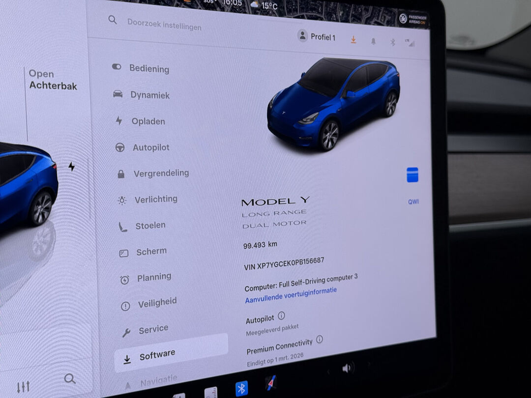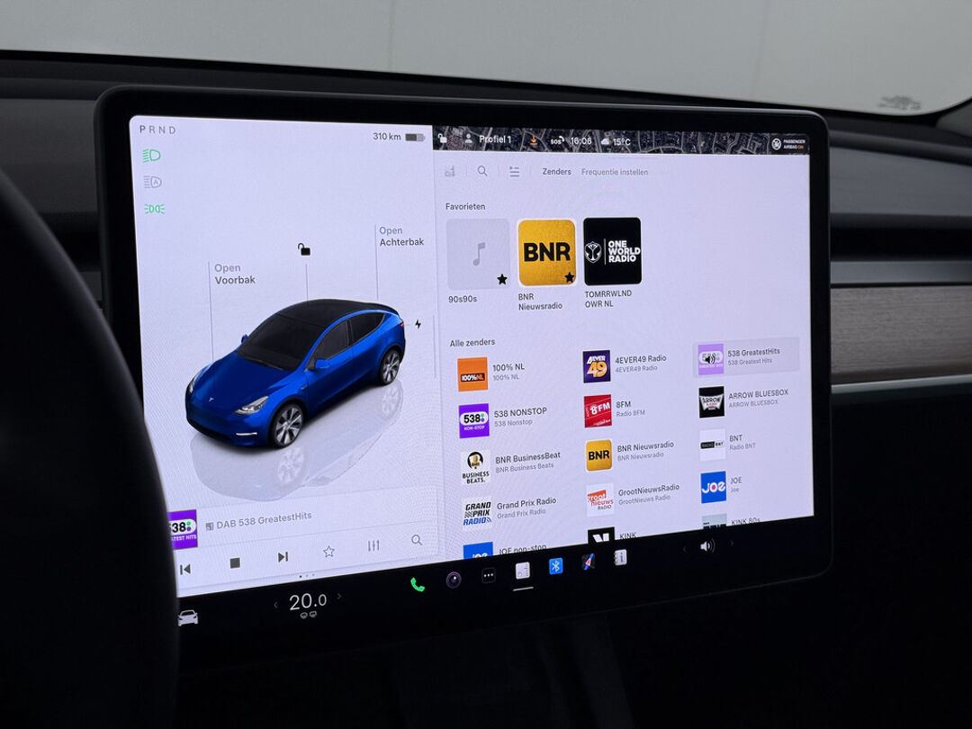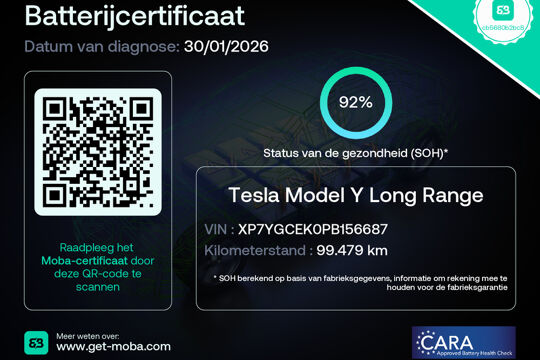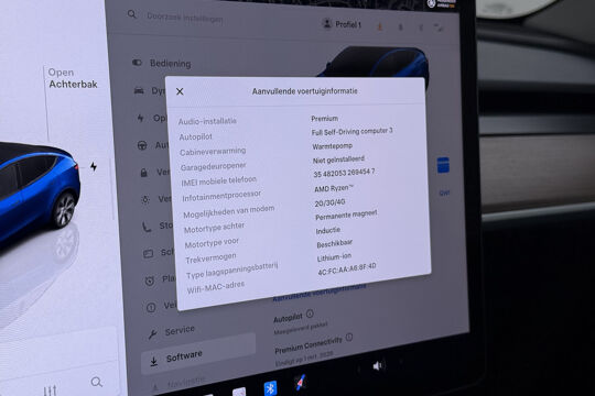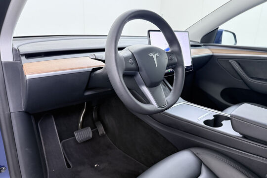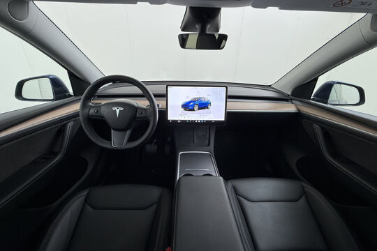De Tesla Model Y vertegenwoordigt de nieuwe generatie auto's en verenigt elektrische kwaliteit en duurzaamheid met elkaar. Met de combinatie van elektrische aandrijving en automatische transmissie manoeuvreert u soepel door het verkeer. De krachtige motor geeft deze Tesla uitstekende prestaties. Solide op nat asfalt en regenklinkers, maar net zo onverschrokken op de onverharde weg: de vierwielaandrijving trekt u overal doorheen. Het interieur is luxe uitgevoerd met leren bekleding. Neem plaats op de comfortabele stoelen. Dankzij de elektrische bediening en het geheugen is het eenvoudig om hierin de beste zitpositie te vinden. Hoe koud het buiten ook is, het verwarmbare stuurwiel en de verwarmbare voorstoelen brengen uw handen, vingers en lichaam snel weer op temperatuur. De elektrische achterklep opent met een druk op de knop, zodat u gemakkelijk toegang heeft tot de bagageruimte. Het glazen panoramadak geeft ook doordeweeks een vakantiegevoel. Wat een licht en zicht! Natuurlijk behoren elektrisch verstelbare stuurkolom, 19 inch lichtmetalen velgen, LED-dagrijverlichting, getint glas en LED-achterlichten ook tot de uitrusting van deze complete auto.