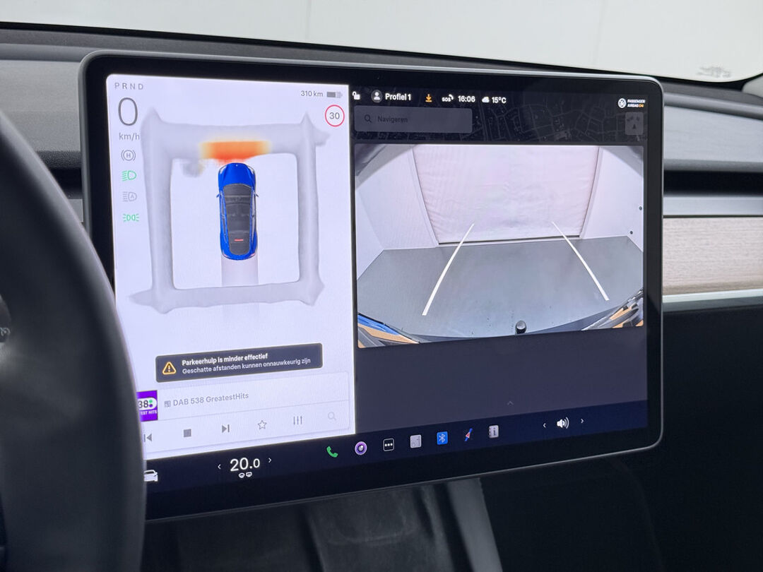 Geavanceerde veiligheidssystemen kijken tijdens elke rit met u mee en schatten continu de risico's in. De lane assist dirigeert u weer naar het midden van uw rijstrook als u buiten de lijnen dreigt te gaan. In deze Tesla vinden we verder een dodehoekdetectie en autonoom remsysteem.