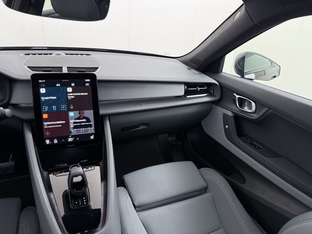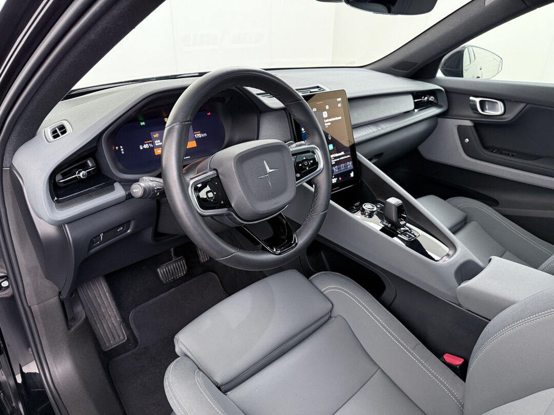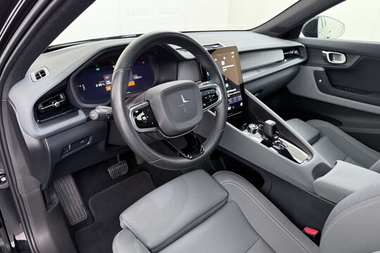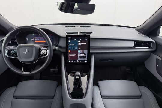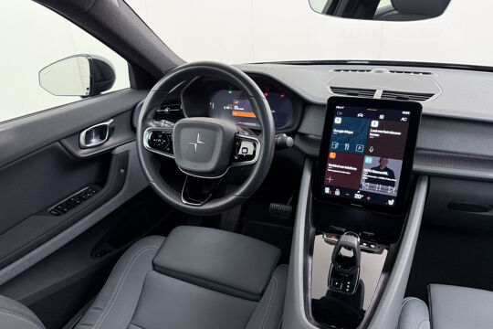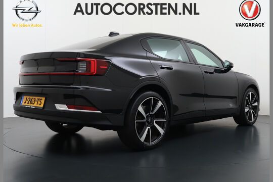 Kijk naar de onvergelijkbare vormgeving. De Polestar 2 is een elektrische auto die zijn bijzondere karakter niet voor de buitenwereld verbergt. De actieradius van deze auto is met 450 kilometer ruim voldoende voor de meeste dagelijkse ritten. De lithium-ion accu heeft een capaciteit van 11 kWh en is binnen 7 uur opgeladen. De krachtige motor geeft deze Polestar uitstekende prestaties. Deze Polestar 2 heeft verwarmbare voorstoelen, voor zowel bestuurder als bijrijder. De elektrische achterklep opent met een druk op de knop, zodat u gemakkelijk toegang heeft tot de bagageruimte. Het glazen panoramadak geeft u een ongekende rijsensatie: wat een licht en zicht! Afzien is er bij deze Polestar 2 niet bij. Zelfs achterin vinden we de verwarmde achterbank. Bij de zeer complete uitrusting van deze auto behoren ook 19 inch lichtmetalen velgen, LED koplampen, in delen neerklapbare achterbank, LED-achterlichten en verstelbare lendensteunen.