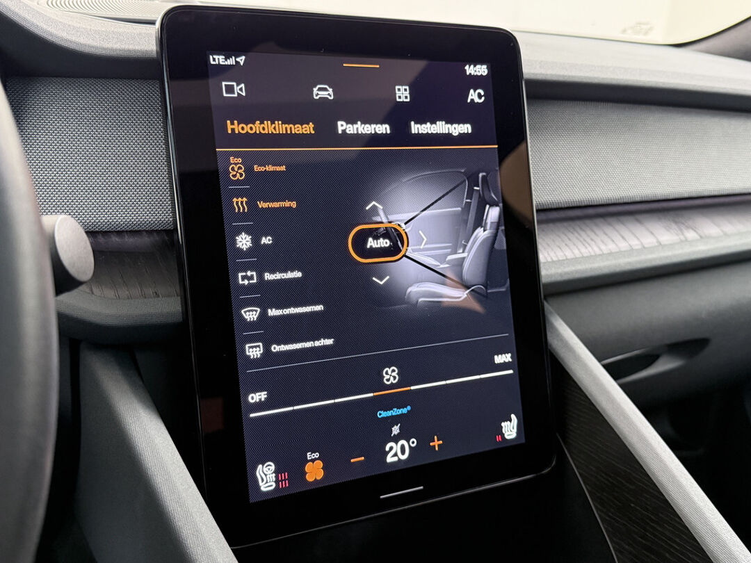 Zoals u mag verwachten van deze Polestar 2 is hij uitgerust met een reeks aan actieve veiligheidssystemen. In het instrumentarium laat de verkeersborddetectie de actuele verkeersborden zien. Met het Lane-keeping systeem komt u nooit per ongeluk buiten de rijstrook. Rijdt een ander voertuig in uw dode hoek dan waarschuwt het systeem met een signaal. De auto is ook uitgerust met forward collision warning system, hill hold functie, vermoeidheidsherkenning, autonoom remsysteem en bandenspanningcontrolesysteem.