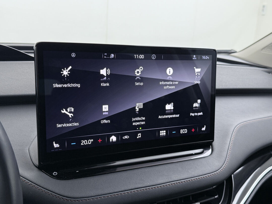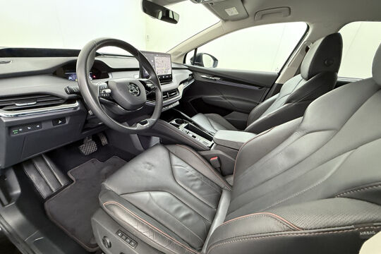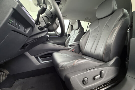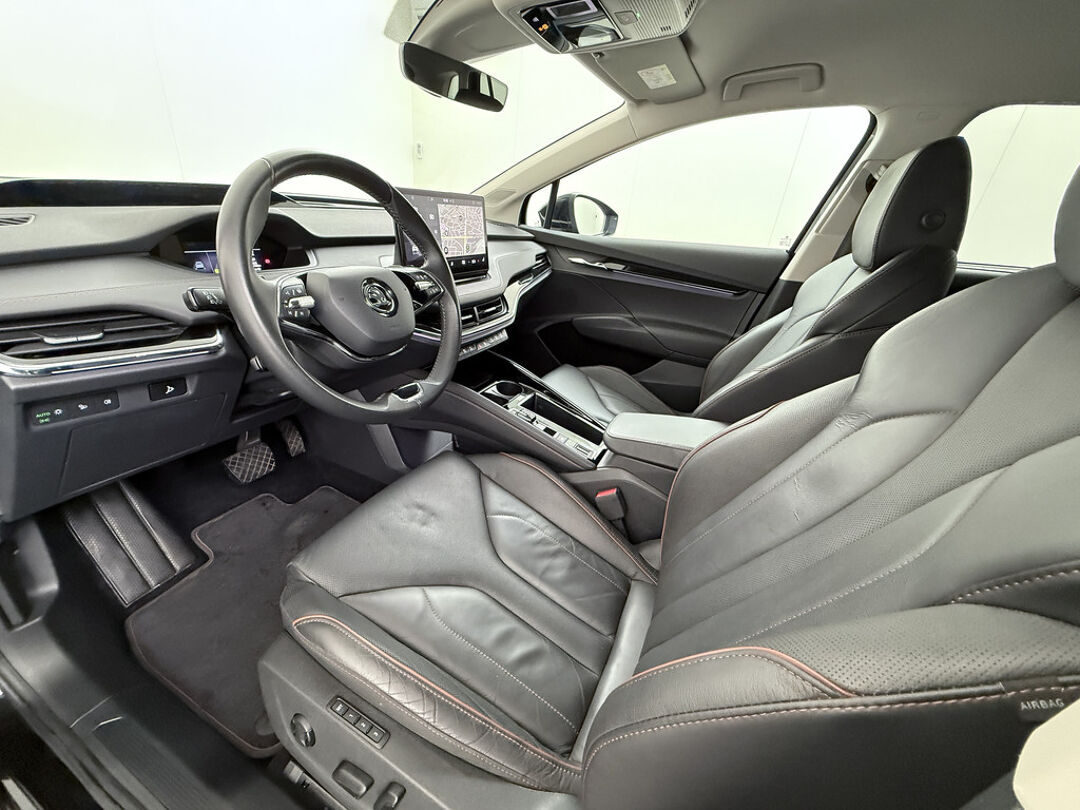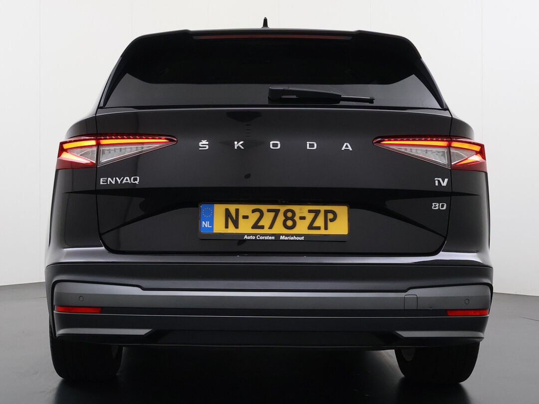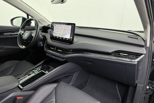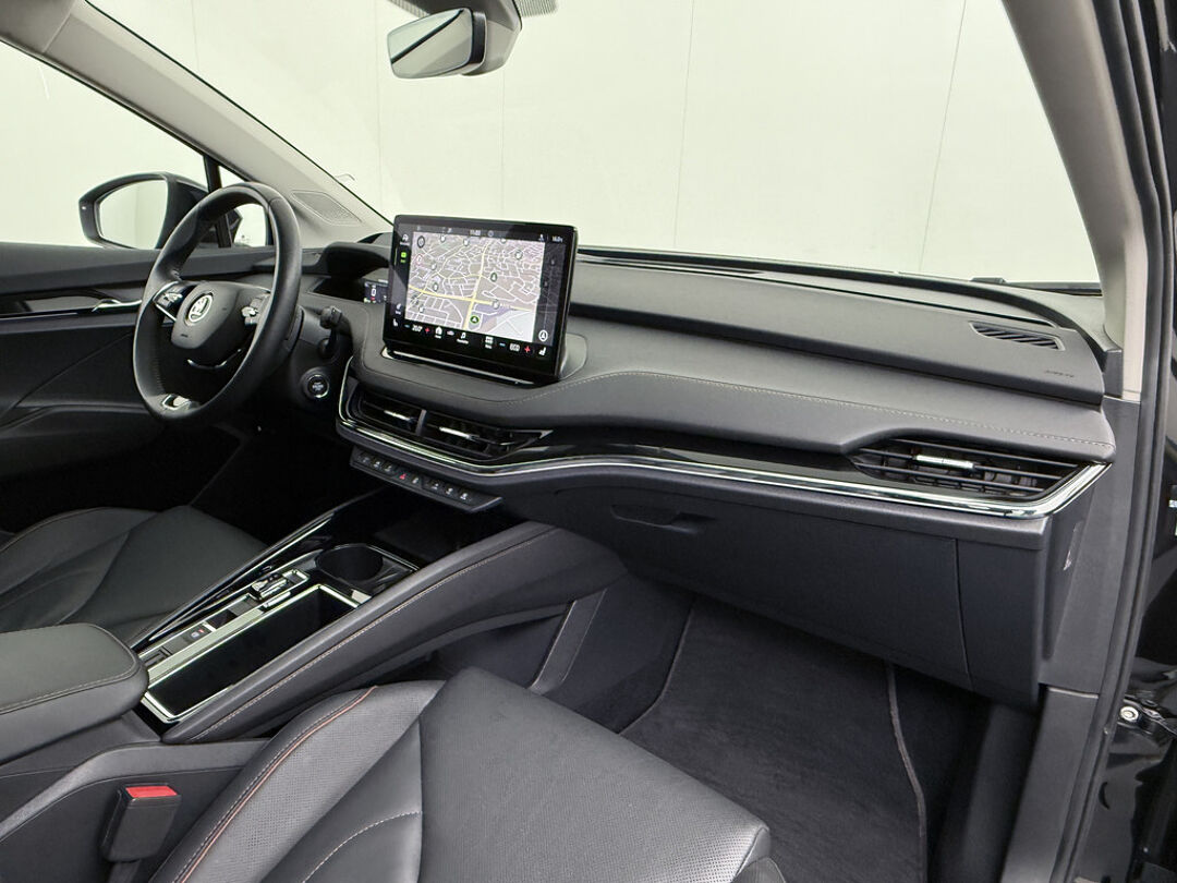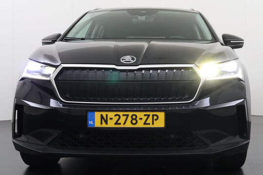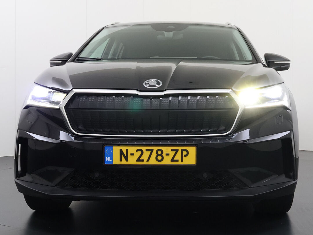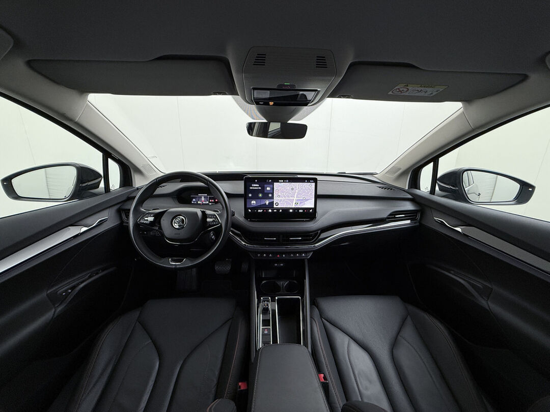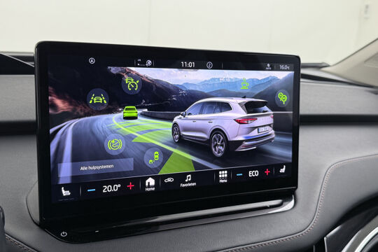 Valt u voor de milieuvriendelijke aandrijftechniek? Of voor de comfortabele rijbeleving? Met de elektrisch aangedreven ŠKODA Enyaq iV hoeft u niet te kiezen. Een elektrische auto is echt niet meer alleen voor korte ritjes. Het rijbereik van deze auto biedt voldoende ruimte voor uw dagelijkse ritten. Daardoor kan het opladen vaak 's nachts gebeuren. Een krachtige motor geeft deze auto zijn sportieve prestaties. Wat valt er verder op aan dit model? Dat is toch zeker het lederen interieur. En niet te vergeten de elektrisch bedienbare achterklep. Neem plaats op de comfortabele stoelen. Dankzij de elektrische bediening en het geheugen is het eenvoudig om hierin de beste zitpositie te vinden. Als u de stuurverwarming inschakelt, geniet u van weldadige warmte voor uw handen en vingers. De kwaliteit van de matrix LED-verlichting geeft het gevoel dat u bij daglicht rijdt. De uitmonstering van deze auto wordt gecompleteerd door onder meer adaptief dempingsysteem, getint glas, in delen neerklapbare achterbank, LED-achterlichten en verstelbare lendensteunen.