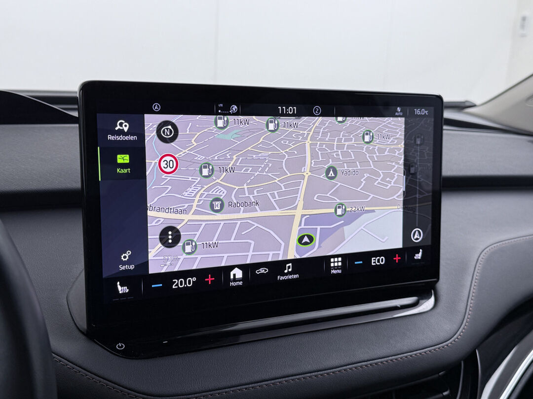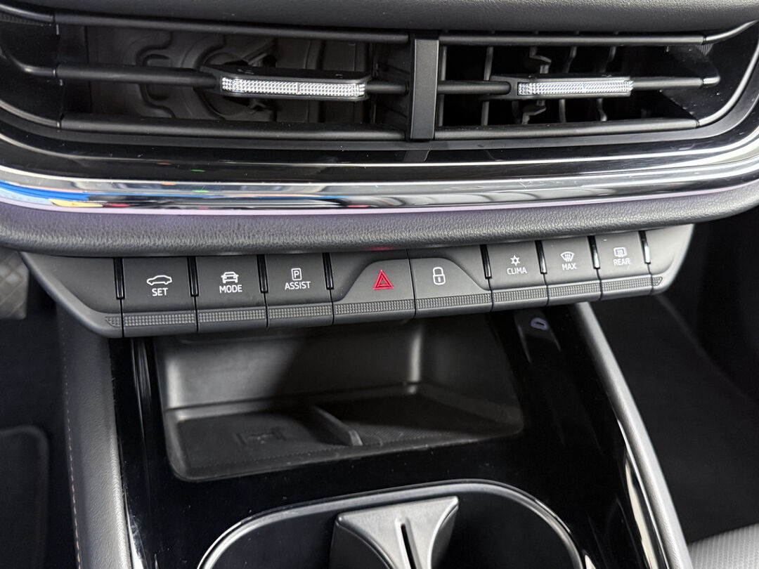 Voor het overzicht tijdens iedere rit is deze ŠKODA Enyaq iV voorzien van een gemakkelijk afleesbaar digitaal dashboard. Niets achter deze auto blijft verborgen door de achteruitrijcamera. Een veilig gevoel! Adaptive cruise control is veilig en comfortabel. De snelheidsregelaar houdt automatisch afstand tot het voertuig dat voor u rijdt. Uw smartphone is tegenwoordig de sleutel tot heel veel. Ook voor deze auto. Remote services, noemen we dat. Waar u ook bent, contact houden is een eitje. Deze ŠKODA is voorzien van spraakbediening voor het navigatiesysteem en voor het audio-installatiesysteem met DAB-ontvangst. Maar u kunt ook de knoppen op het stuur gebruiken. Ook automatische airconditioning, draadloos opladen, regensensor, keyless entry, automatisch dimmende binnenspiegel en isofix-aansluiting zijn aan boord.