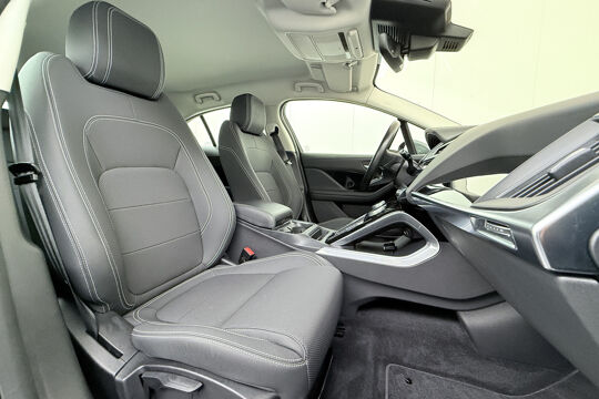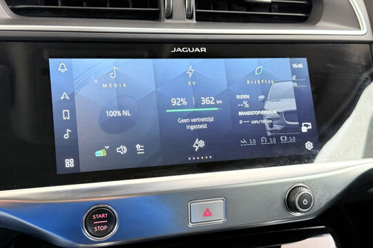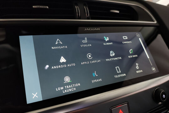 Pragmatisch en veilig als deze auto is, beschikt hij over diverse veiligheidssystemen. Dat de auto steeds meer taken van de bestuurder overneemt, merkt u bijvoorbeeld aan het systeem voor verkeersbord-detectie in deze auto. Deze Jaguar I-PACE is ook behulpzaam als het gaat om een rechte koers. Het Lane-keeping systeem signaleert en corrigeert als u onbedoeld de rijstrooklijnen dreigt te overschrijden. Op een kop-staartbotsing zit niemand te wachten. Daarom is de forward collision warning onderweg constant alert en berekent via een sensor de veilige afstand tot voorliggers. De auto is ook uitgerust met hill hold functie, vermoeidheidsherkenning, autonoom remsysteem en bandenspanningcontrolesysteem.