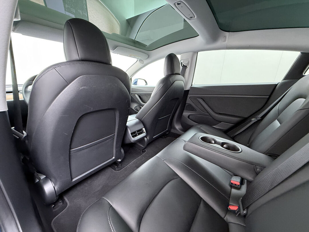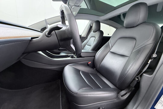 Kijk naar de zelfbewuste vormgeving. Ontdek de vernieuwende technologie aan boord. De Tesla Model 3 is een unieke elektrische auto. Stil en stevig optrekken zonder extra uitstoot? De elektromotor zorgt ervoor! Een krachtige motor geeft deze auto zijn sportieve prestaties. Hoge kwaliteit is ook binnenin aanwezig. Kijkt u maar naar de leren bekleding! U past de stoelen moeiteloos aan, ze zijn elektrisch in te stellen en hebben bovendien een geheugen. Het glazen panoramadak geeft ook doordeweeks een vakantiegevoel. Wat een licht en zicht! U wordt in deze auto ook getrakteerd op elektrisch verstelbare stuurkolom, 18 inch lichtmetalen velgen, LED-dagrijverlichting, getint glas, in delen neerklapbare achterbank en LED-achterlichten.
